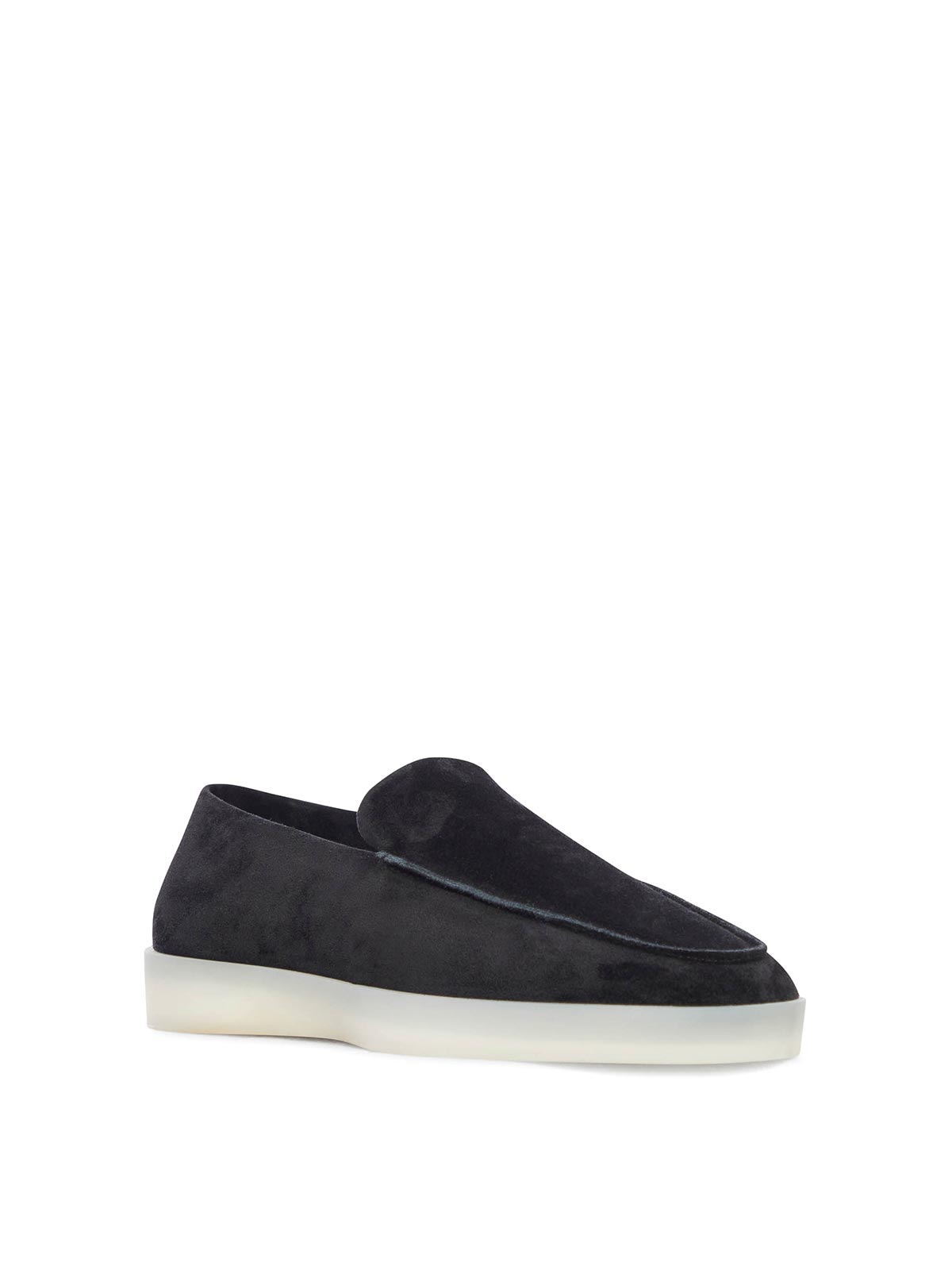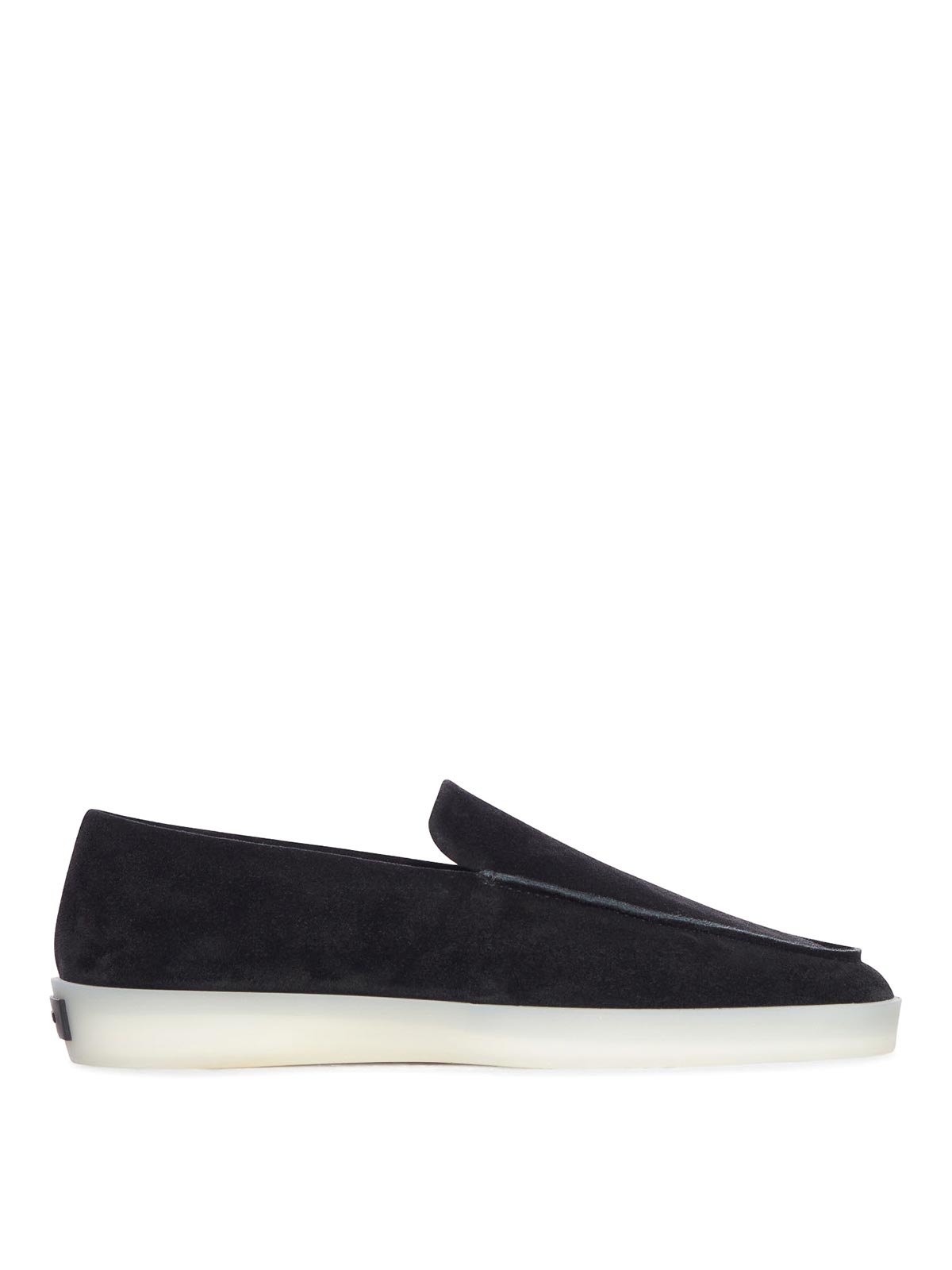 Moc runner de gamuza, diseño sin cordones, costuras, suela plana de goma, punta redondeada, etiqueta con el miedo a Dios en el talón, parte superior: 100% gamuza, color: negro