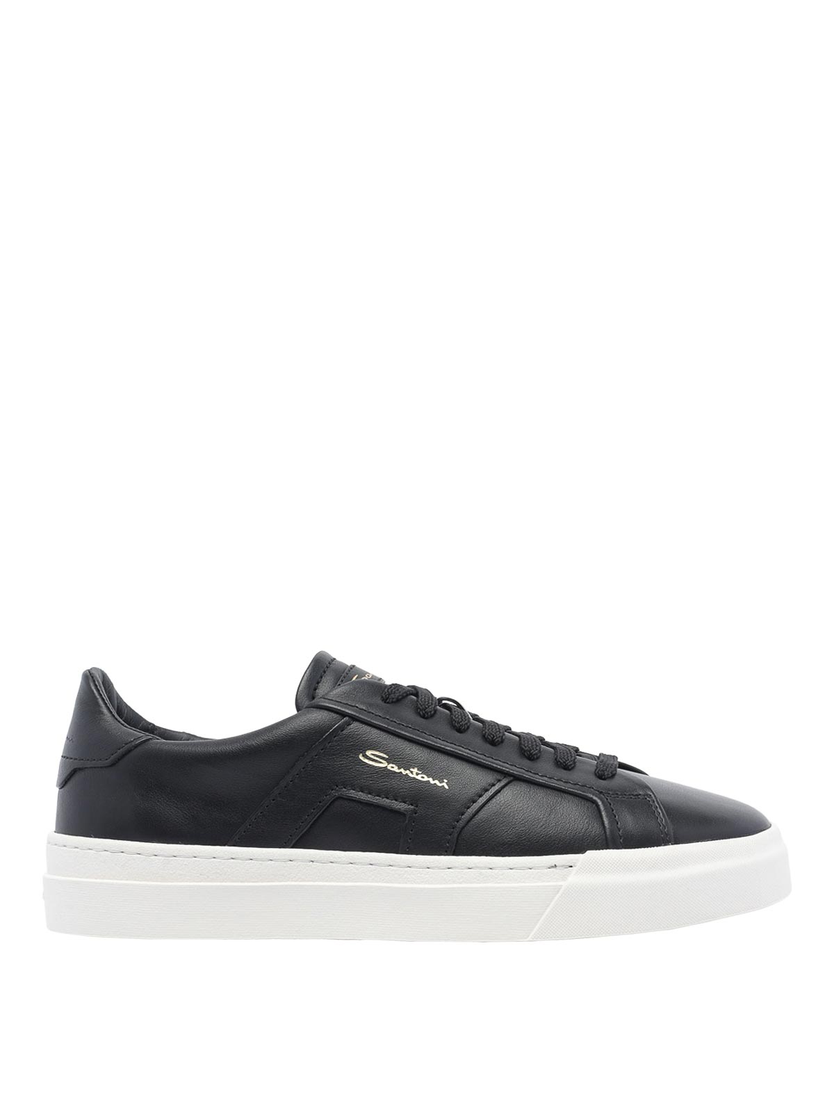 Zapatillas Santoni con logo negro, punta redonda, logo lateral, parte superior de piel