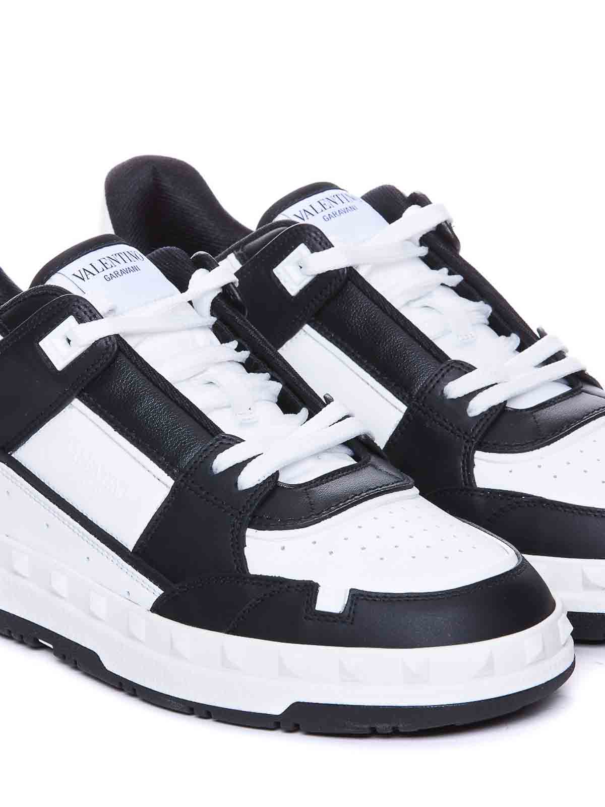 Zapatillas Freedots blancas y negras de Valentino Garavani, cierre con cordones, punta redonda, tachuelas tono sobre tono por todas partes