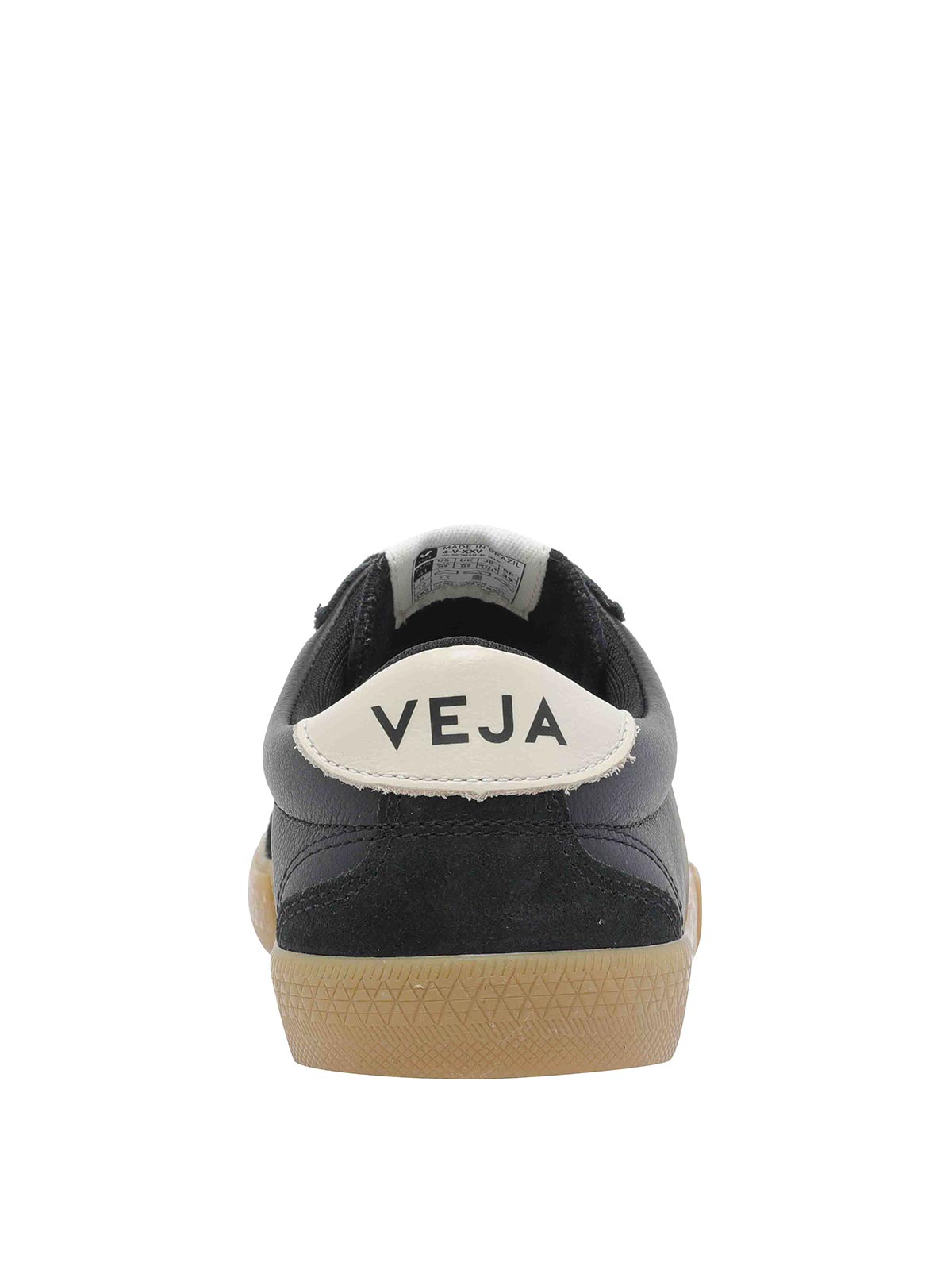 Zapatillas de voleibol negras Veja, cierre con cordones, logotipo en la parte superior, lateral y trasera de piel, punta redonda