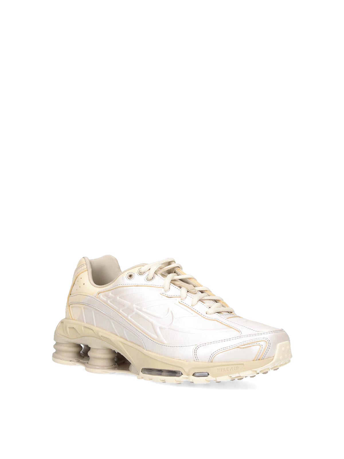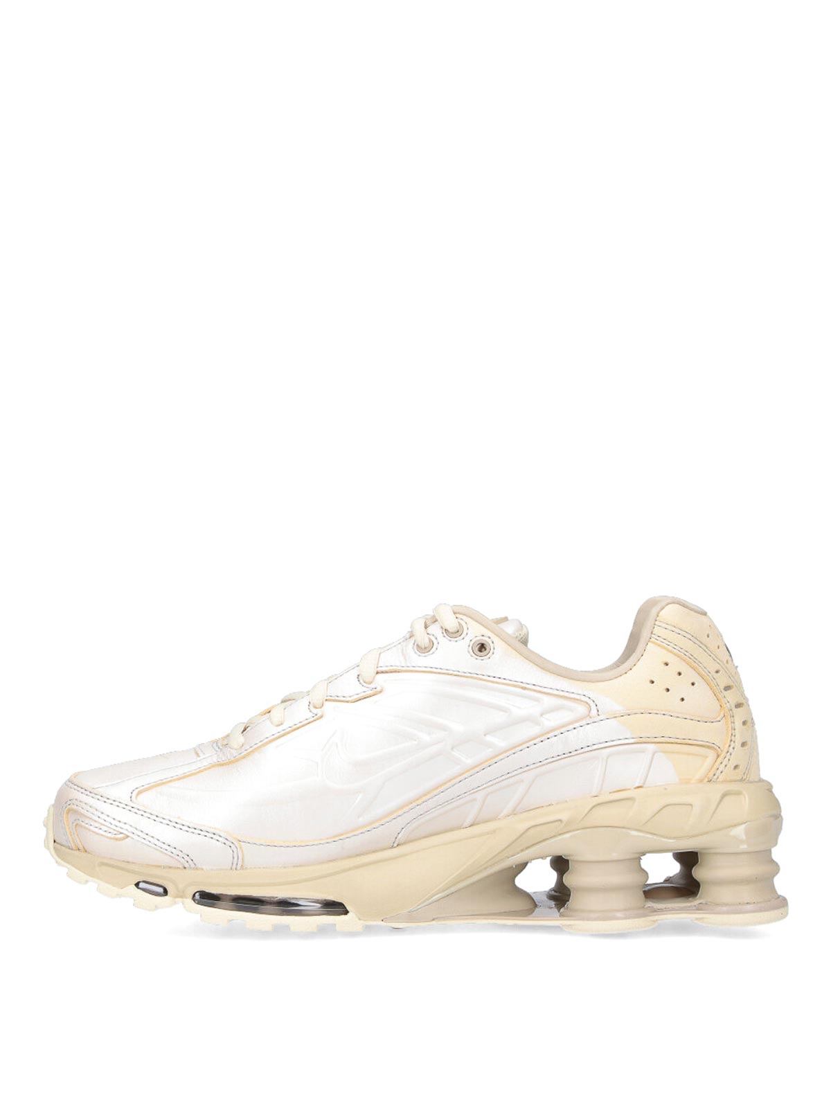 Zapatillas Nike shox ride 2 premium, en tela blanca y beige, punta redonda, cierre con cordones, detalles destrozados en toda la prenda, logotipo en la lengüeta, logotipo swoosh lateral, lengüeta trasera tono sobre tono, detalle de suela shox en cuatro columnas, suela de goma.