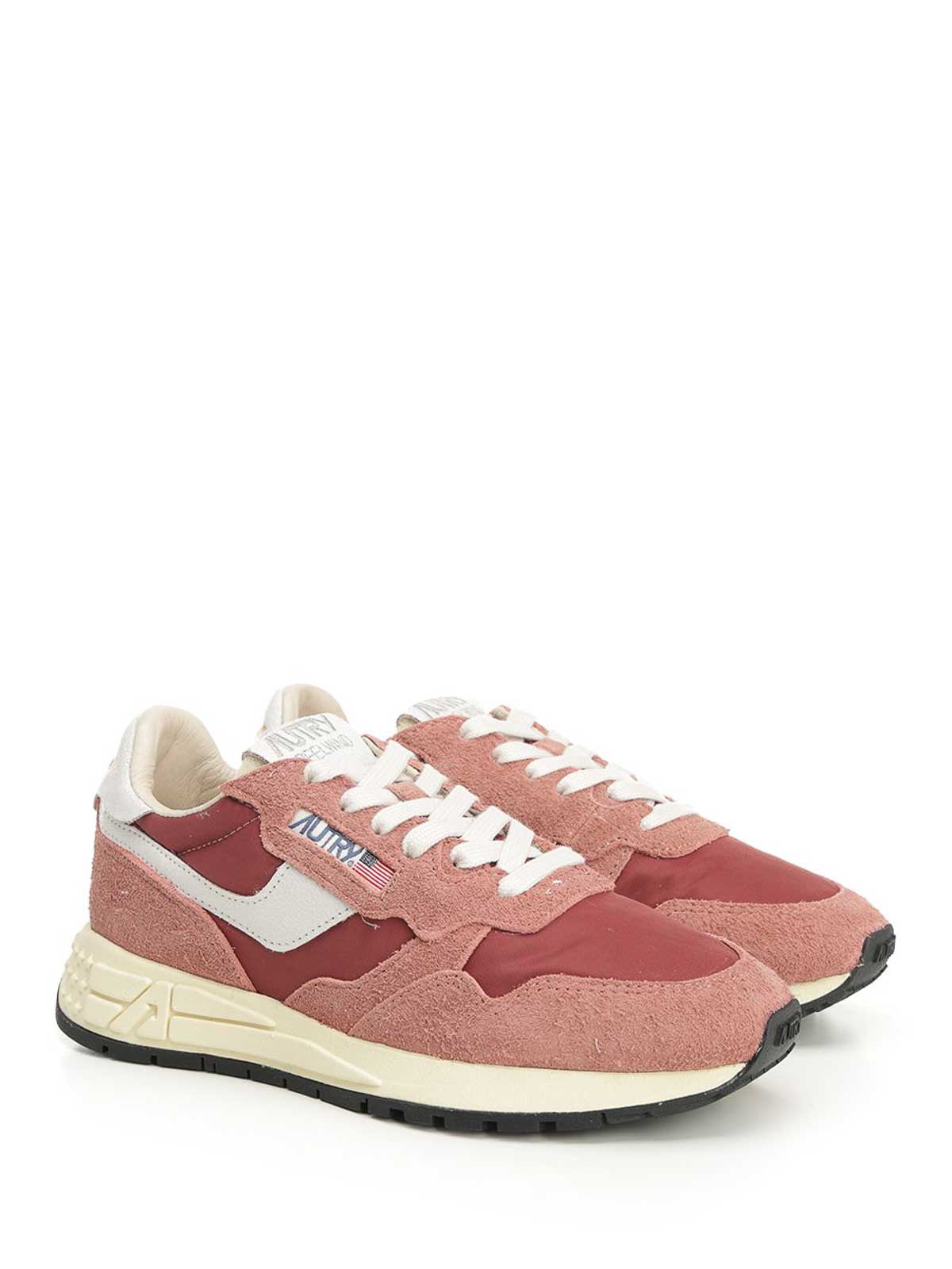 zapatillas bajas Reelwind en una mezcla de gamuza y nailon de Autry, con una suela de goma para correr con una banda de rodadura en forma de flecha en relieve, una parte superior de piel, nailon y gamuza, cordones planos de algodón, una etiqueta cosida en la lengüeta, un cuello acolchado, un forro de rizo de piel, nailon y algodón y una plantilla de piel levantada.