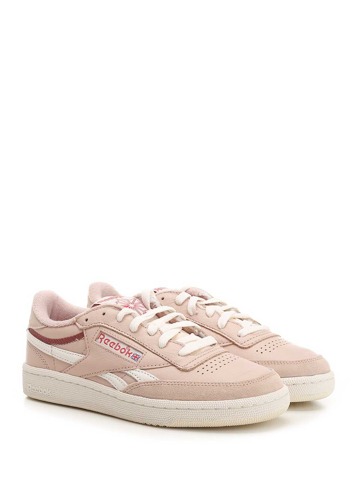 zapatillas vintage club c revenge de piel rosa de reebok, con aplicación en el talón y franjas laterales en contraste.
