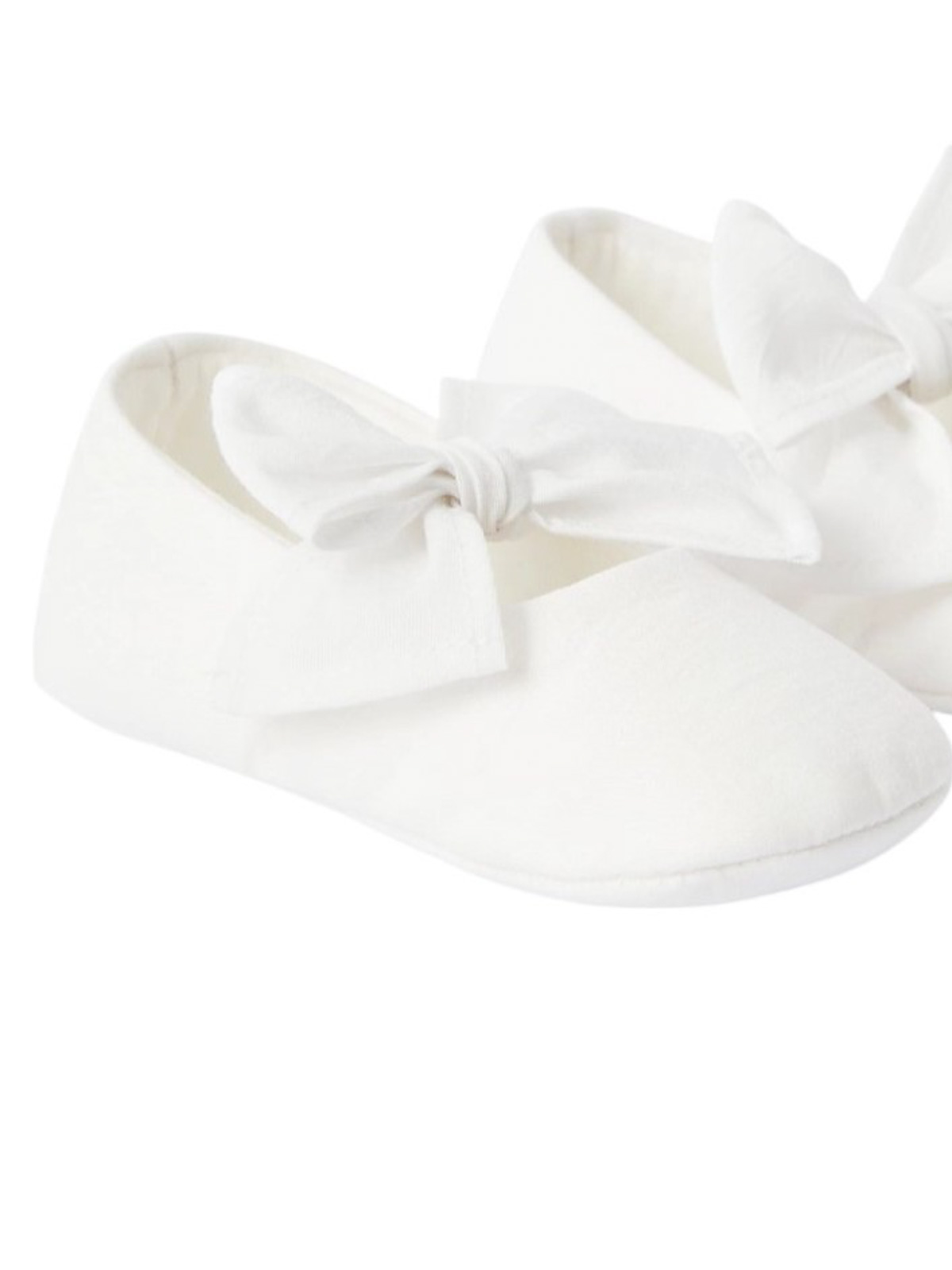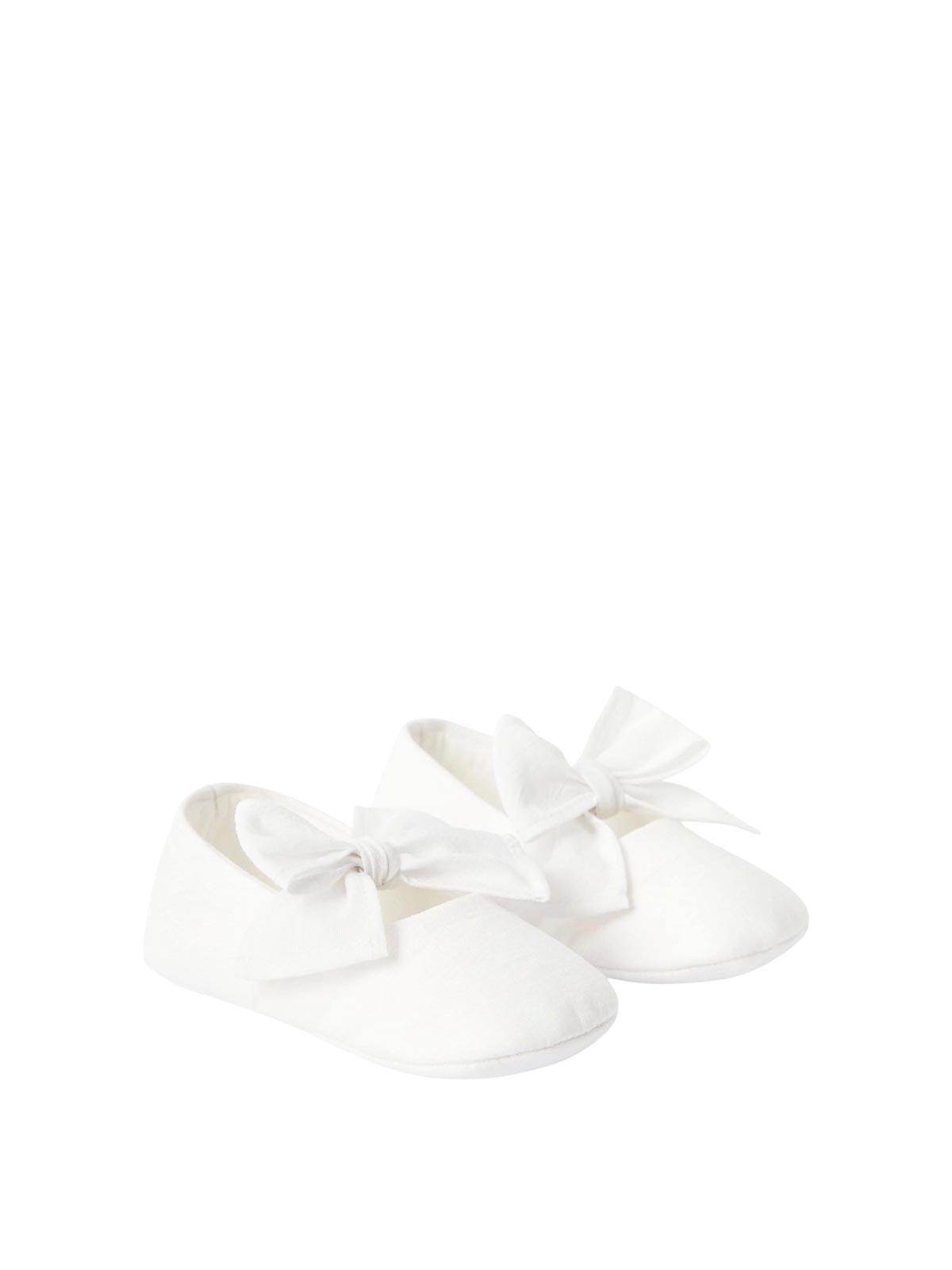 Chaussures pour nouveau-nés en popeline avec sangle élastique terminée par un nœud appliqué
