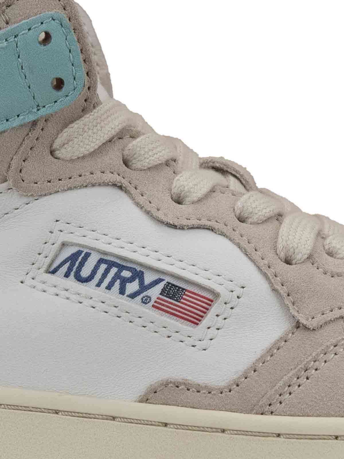 Baskets pour femmes de la marque Autry. tomaia realizzata en cuir avec inserts en cuir camosciata. Tonda, bout percé. Intérieur en tissu, pour une plus grande sensation de confort lors de l'utilisation, avec bords plus hauts et partie arrière avec hauteur en cuir. Onglet en tissu, rembourré sur l'éponge, caractérisé par un patch en forme de logo. Logo/Marque écrite sur le côté, sur la semelle et sur la semelle. Semelle en caoutchouc avec une excellente résistance à l'usure.