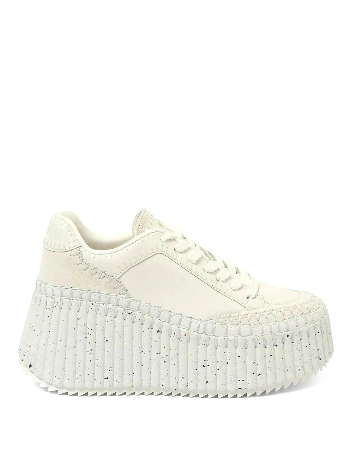 couleur du créateur : blanc, blanc, fermeture à lacets sur le devant, talon compensé, languette avec logo brodé, bout rond