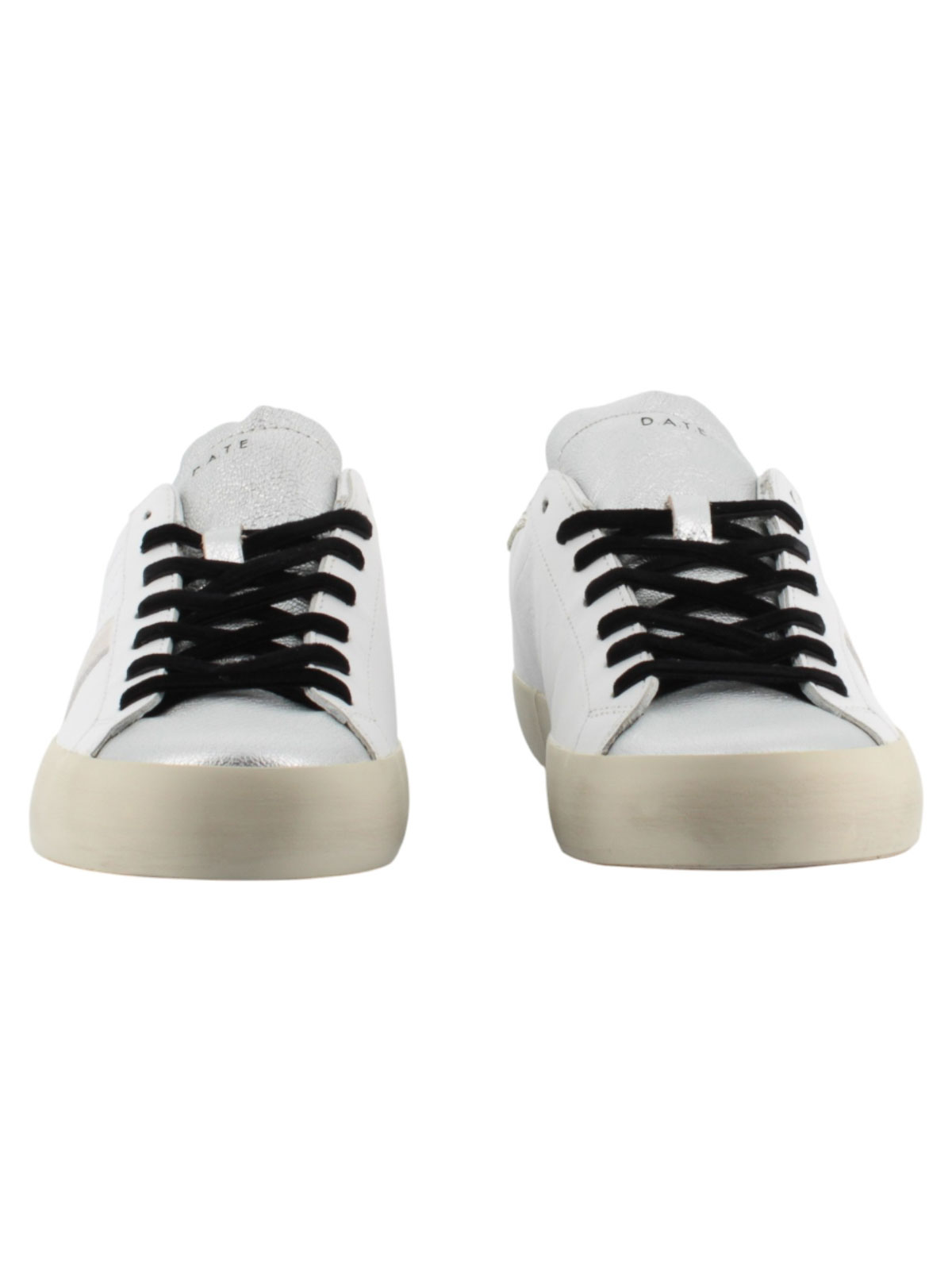 Les baskets Hill Low Shiny White-Platinum de D.A.T.E. Les baskets Hill Low Shiny White-Platinum de D.A.T.E. représentent un équilibre parfait entre style contemporain et détails éclatants. Fabriqué en cuir blanc lisse, il se distingue par son talon scintillant de couleur platine et sa languette en cuir métallisé, qui ajoutent une touche lumineuse et sophistiquée au design essentiel. la semelle plate en caoutchouc naturel et la doublure en cuir garantissent confort et respirabilité pour un usage quotidien avec un goût décontracté et chic.