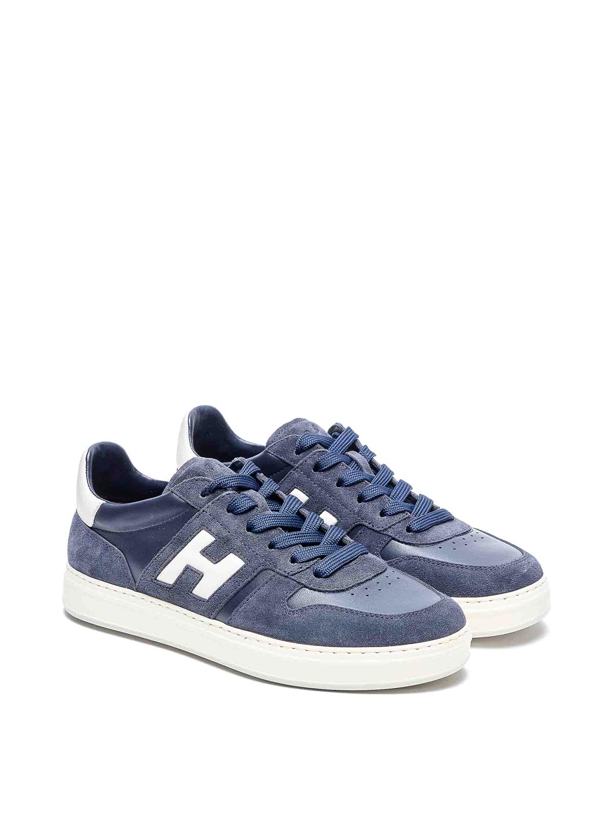 Baskets H-TV bleues Hogan, bout rond, logo latéral, dessus en daim, fermeture à lacets