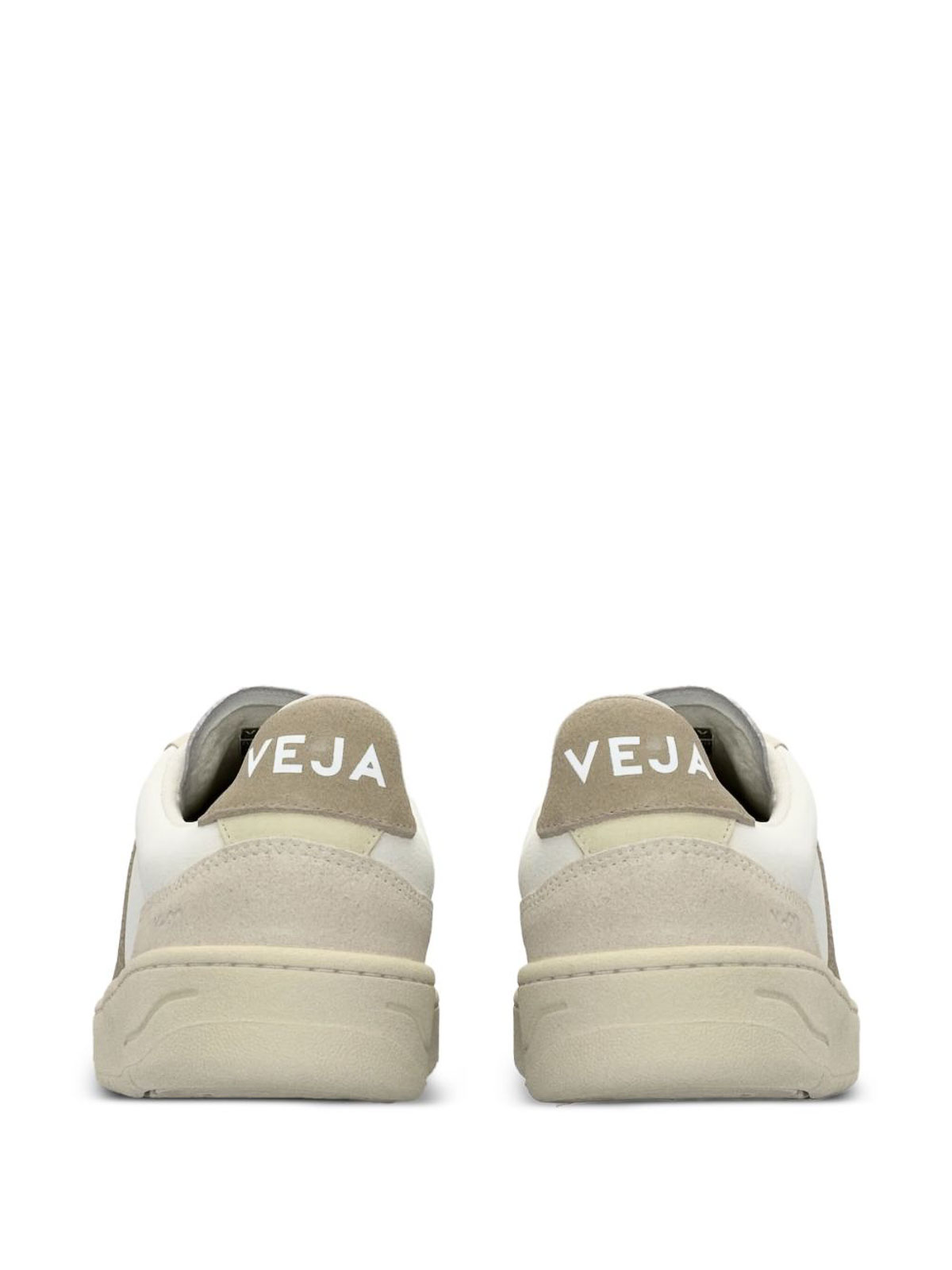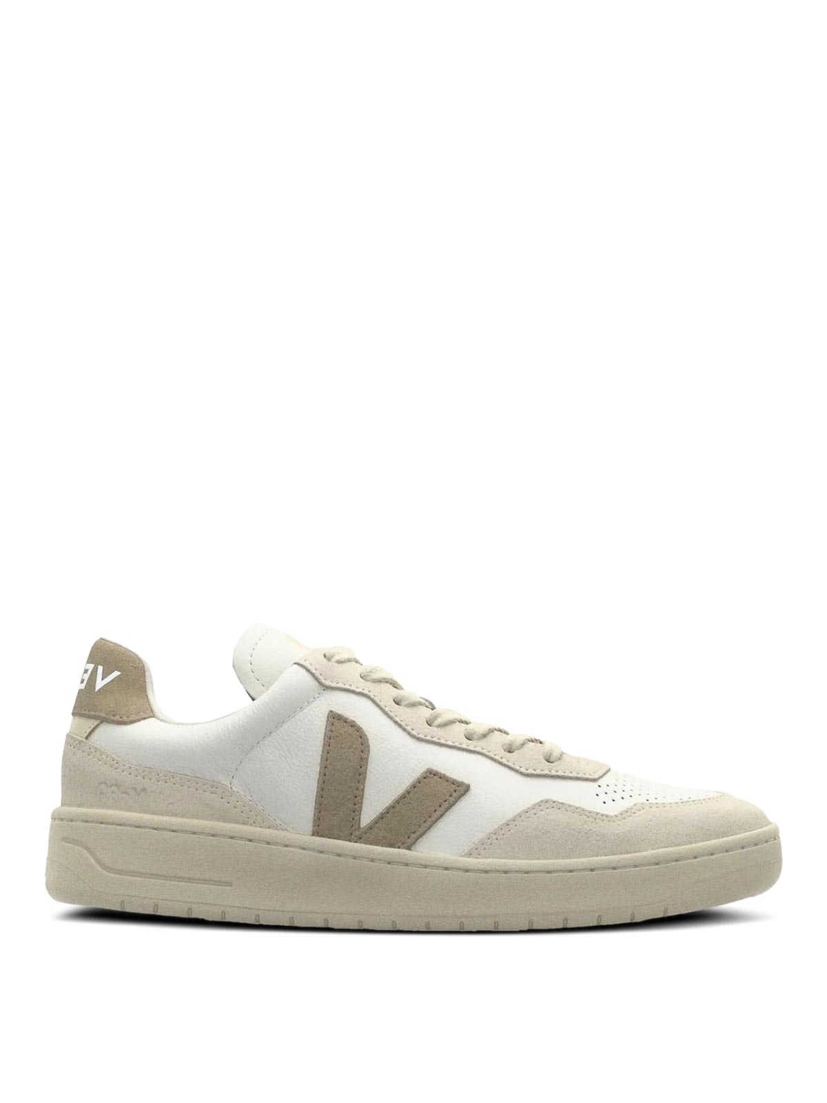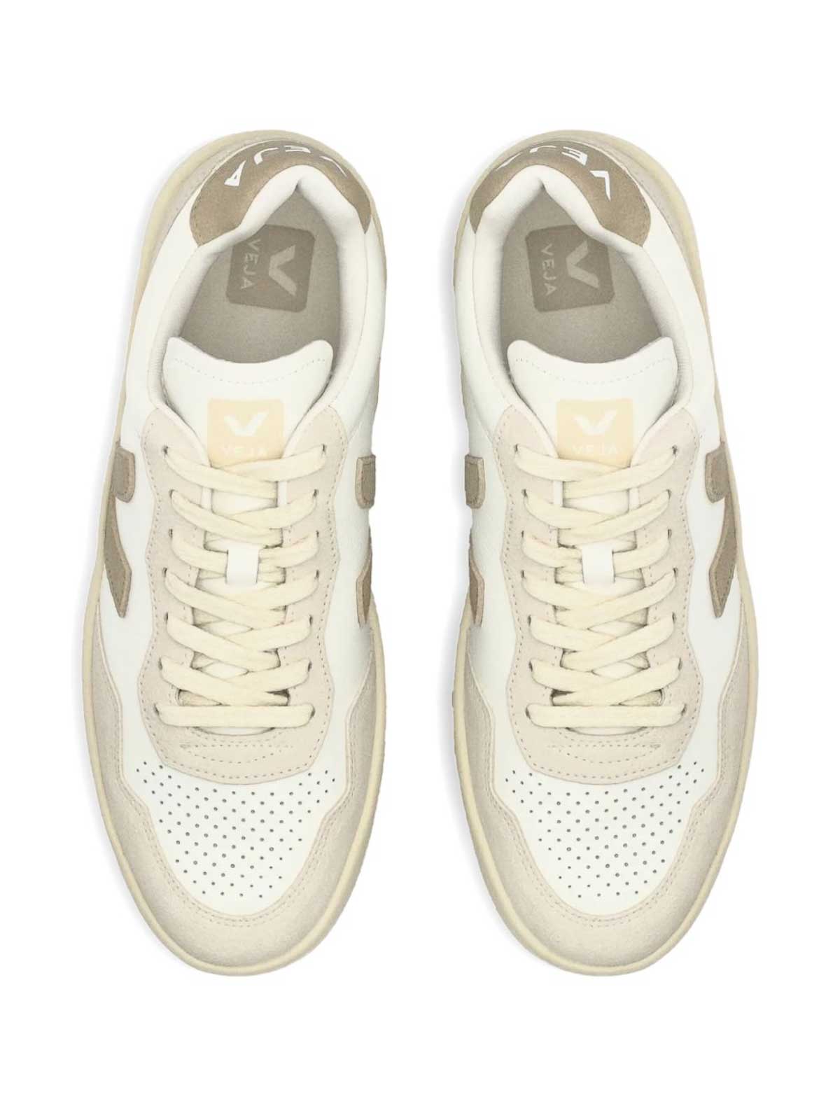 Partie supérieure en cuir blanc cassé, languette du talon en daim, détails perforés, logo en V, lacets plats
