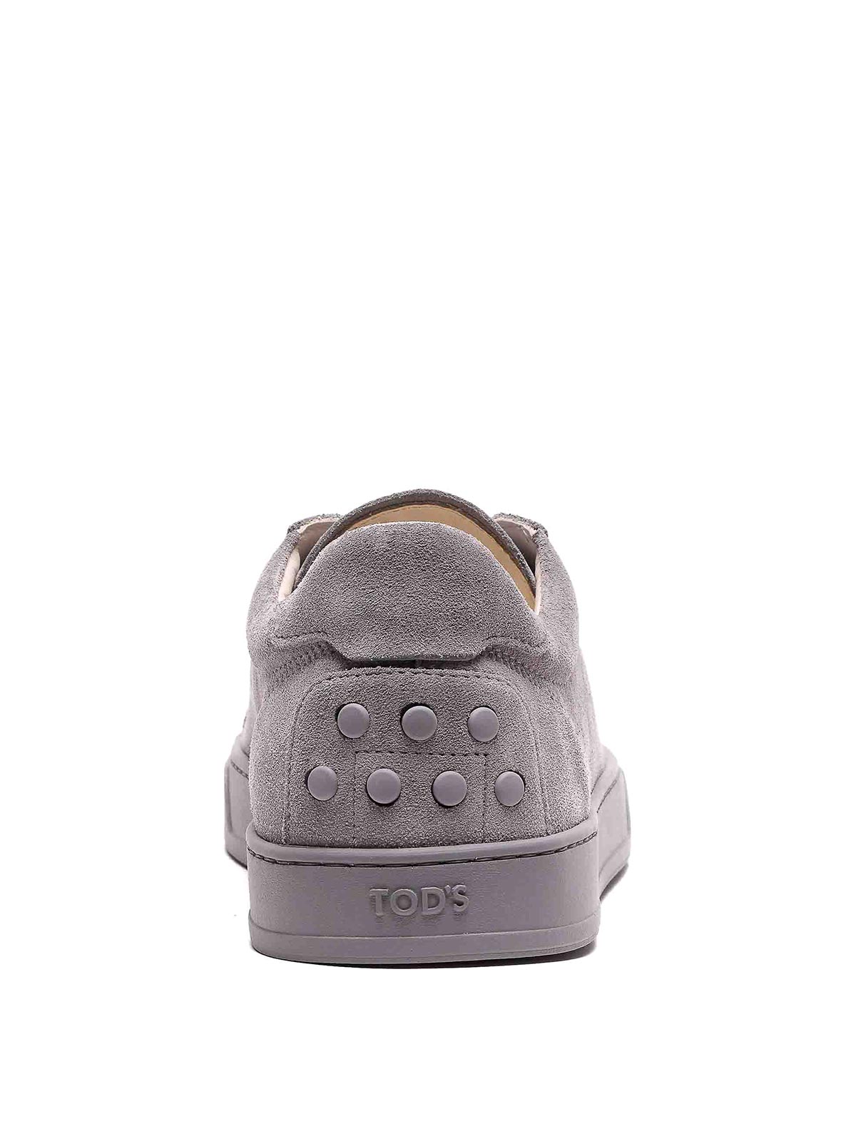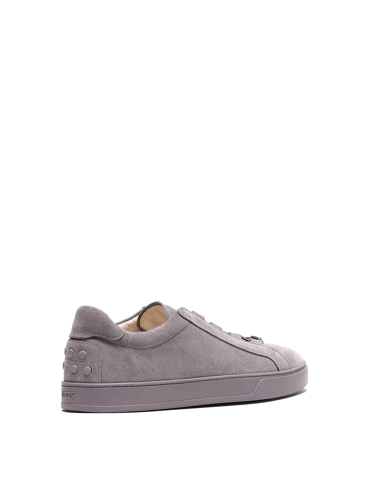Baskets grises Tod's, dessus en daim, logo, détails gommini dans le dos, bout rond