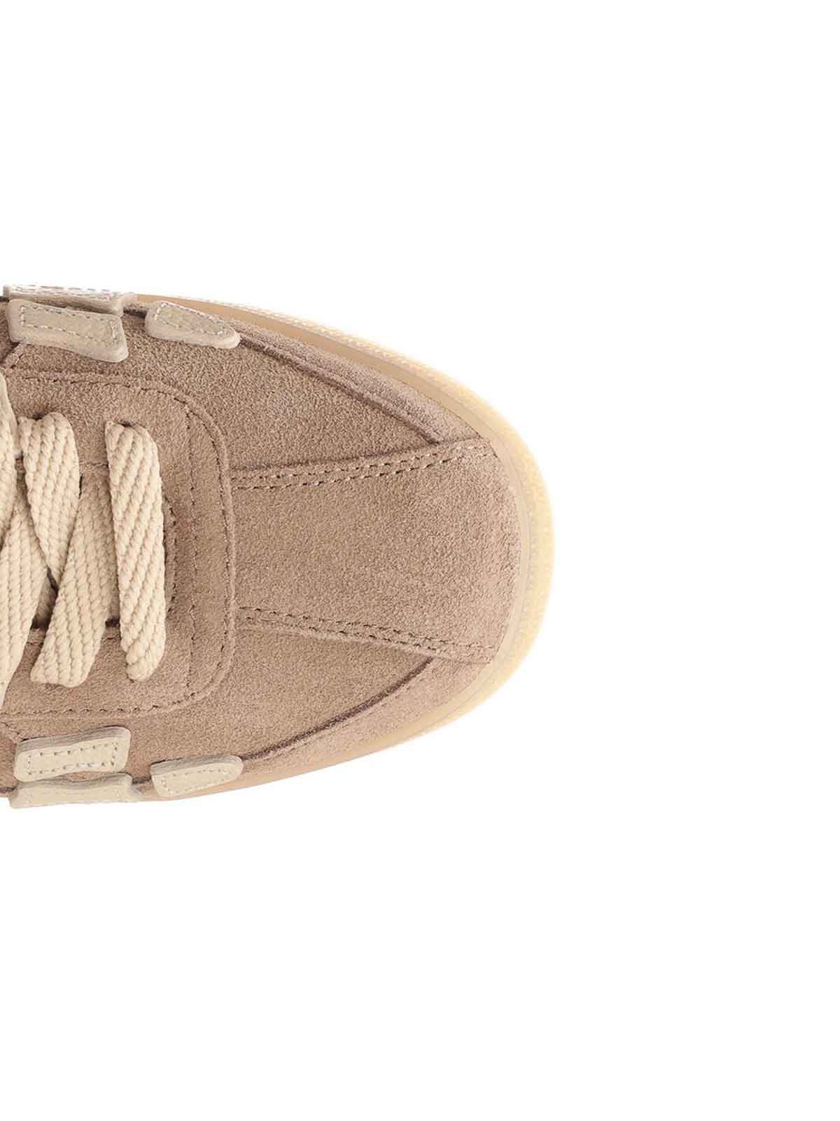 Baskets conçues dans un style bas et épuré. Les Pacific Bones sont fabriquées sur une semelle en caoutchouc à motif maçon avec une tige en daim et les appliqués en cuir emblématiques de la maison.