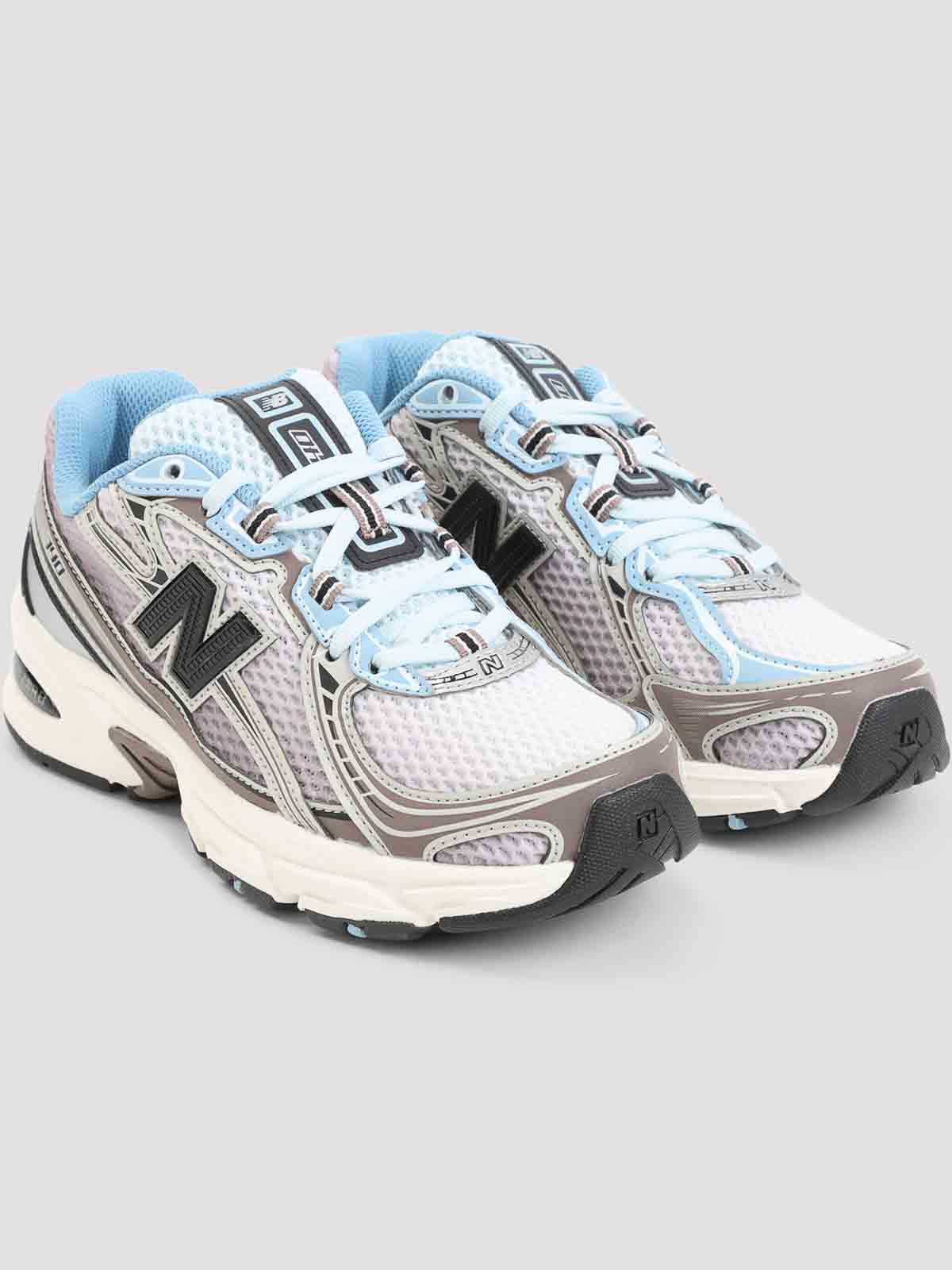 Baskets New Balance en tissu multicolore fabriquées à partir de résille grise, tonique et bleu clair et dotées d'un lacet sur le bout rond, d'un logo en haut sur la languette sur le côté, d'un écusson « n » emblématique sur le côté en textile rembourré à l'intérieur et à l'extérieur