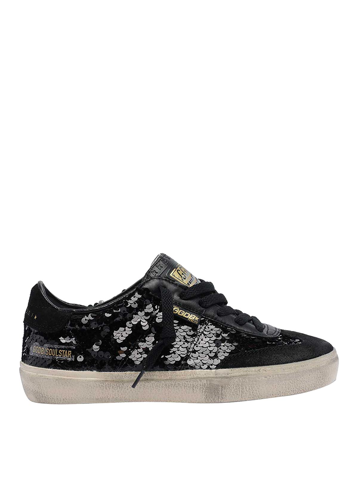 Sneakers Golden Goose Black Soul-Star à bout rond avec sequins et lacets latéraux à logo intégral Nom de la couleur du créateur : noir