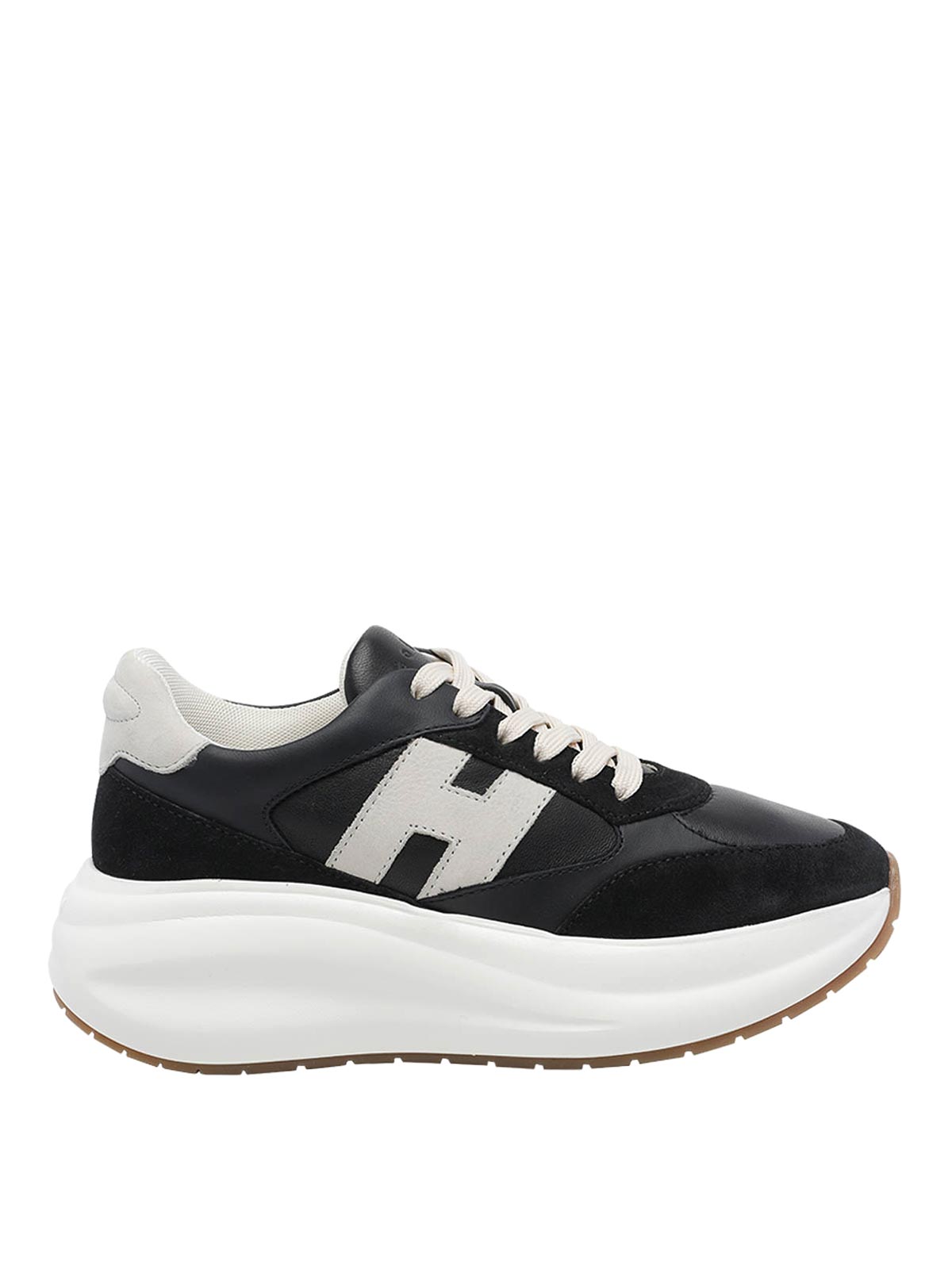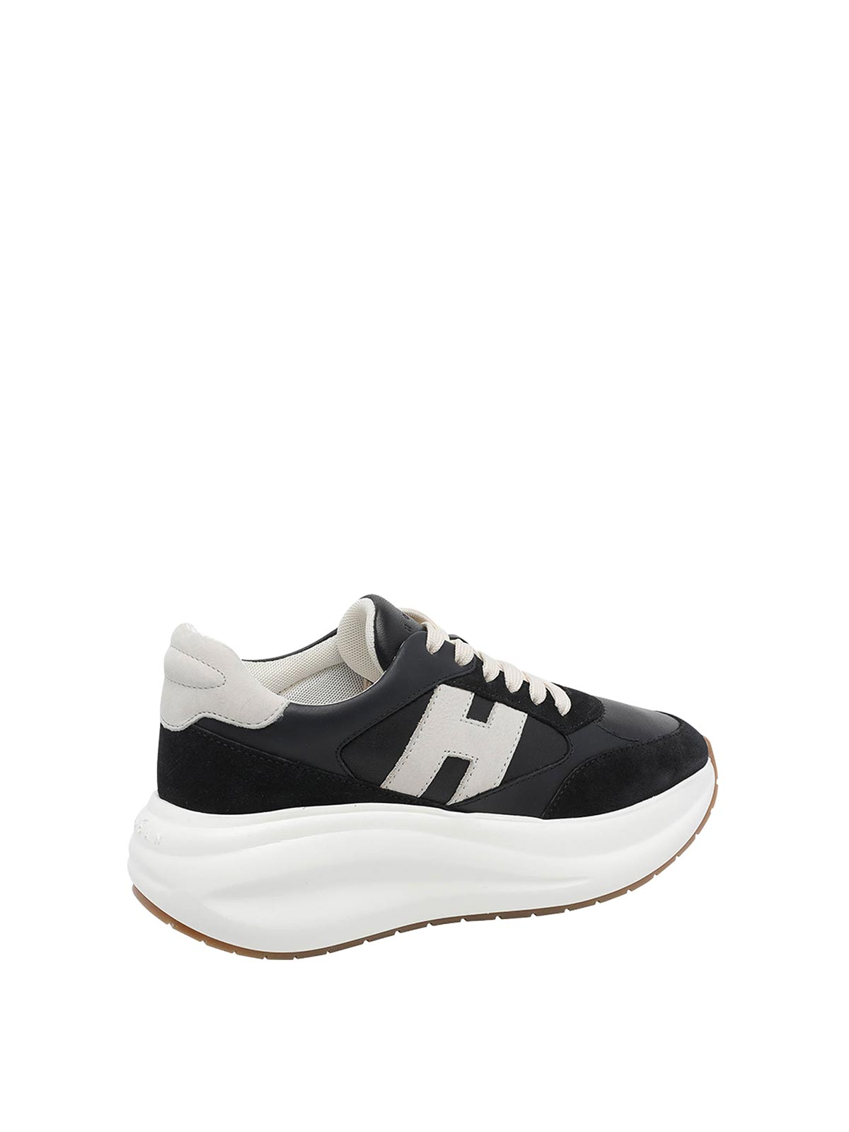 Baskets longues Hogan noires Hogan, fermeture à lacets, logo latéral, bout rond, dessus en cuir et daim