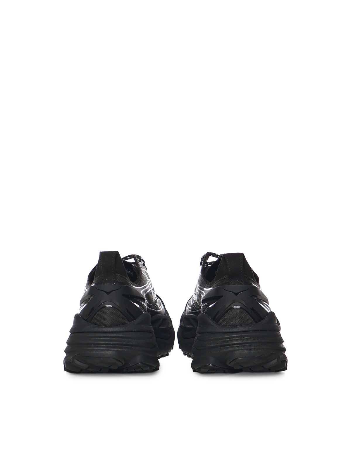 dessus en monomesh translucide, fermeture à lacets rapides, bout en amande, semelle extérieure en caoutchouc, semelle intérieure en textile, détails du logo, couleur : noir, argent