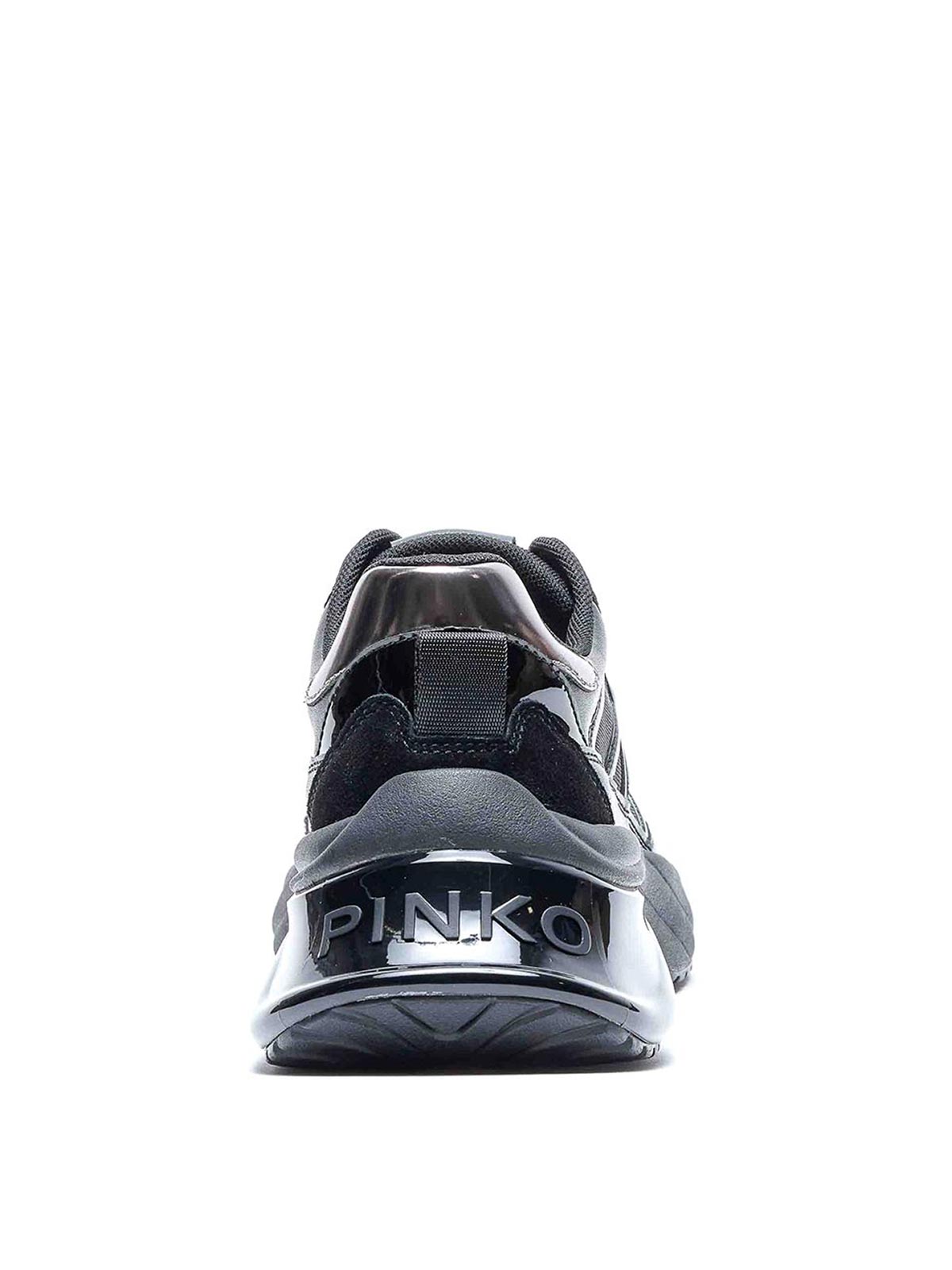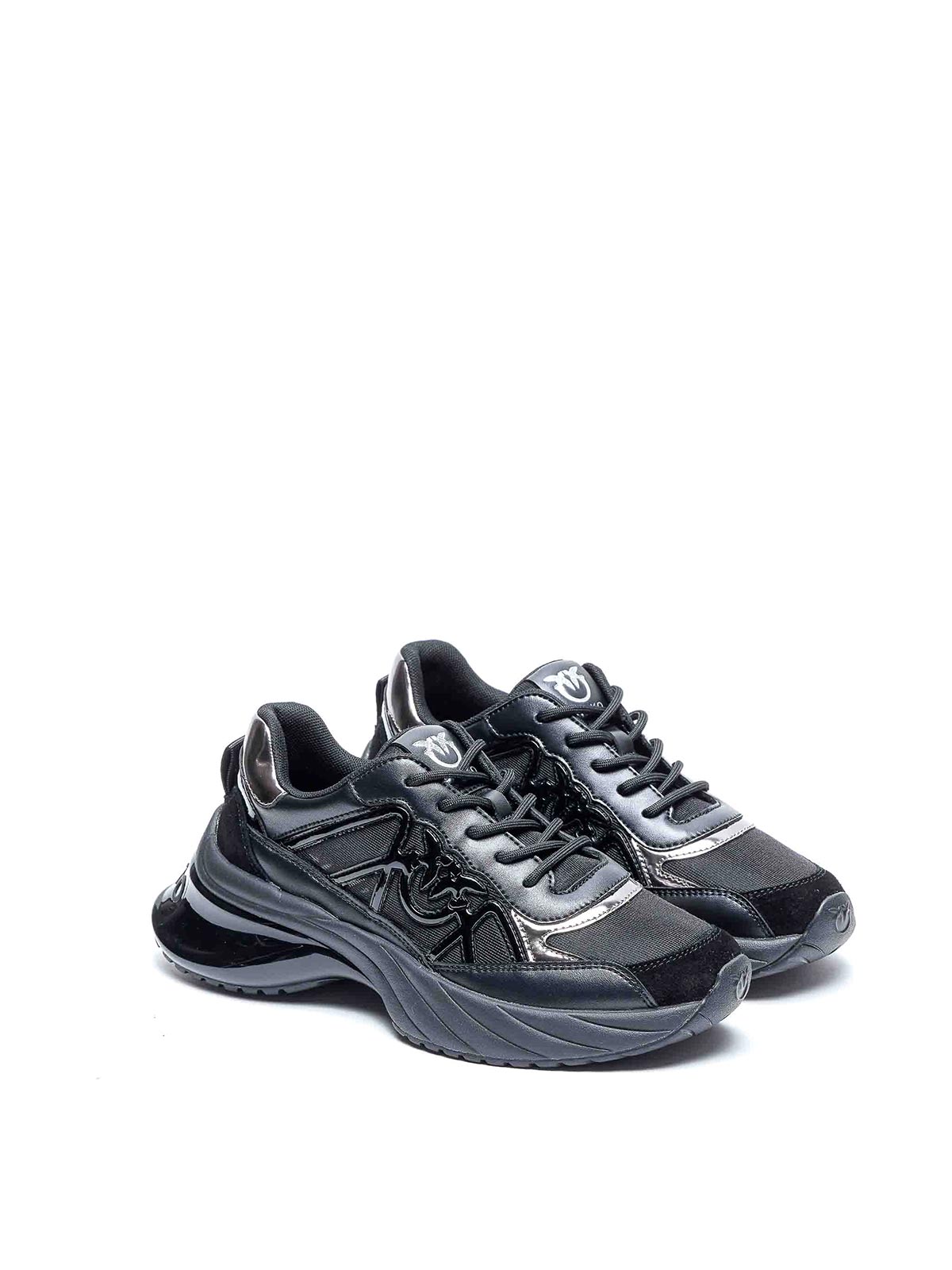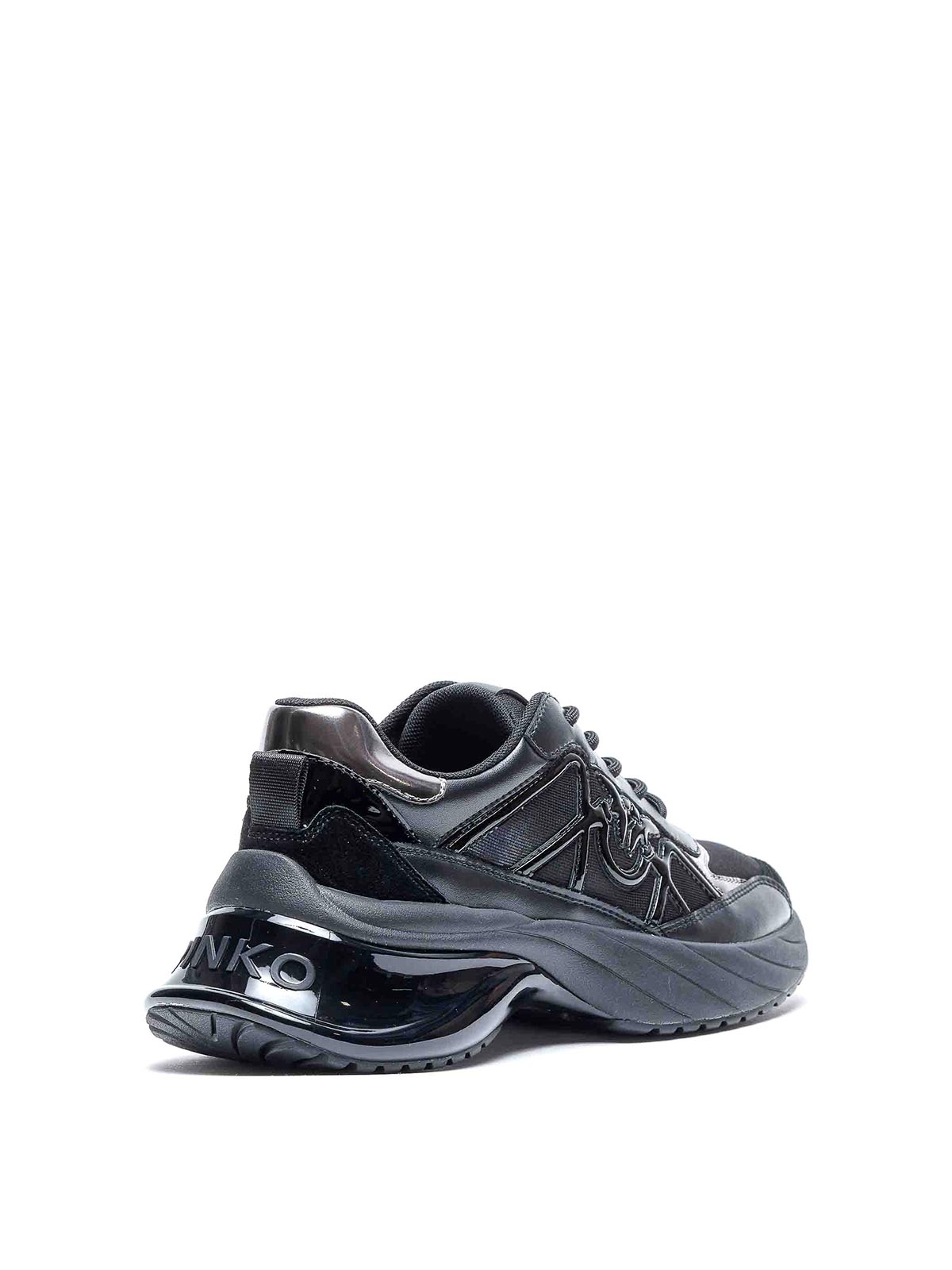Baskets Ariel noires Pinko, tige en cuir et caoutchouc, semelle en caoutchouc, bout rond, logo latéral, détails dorés réfléchissants
