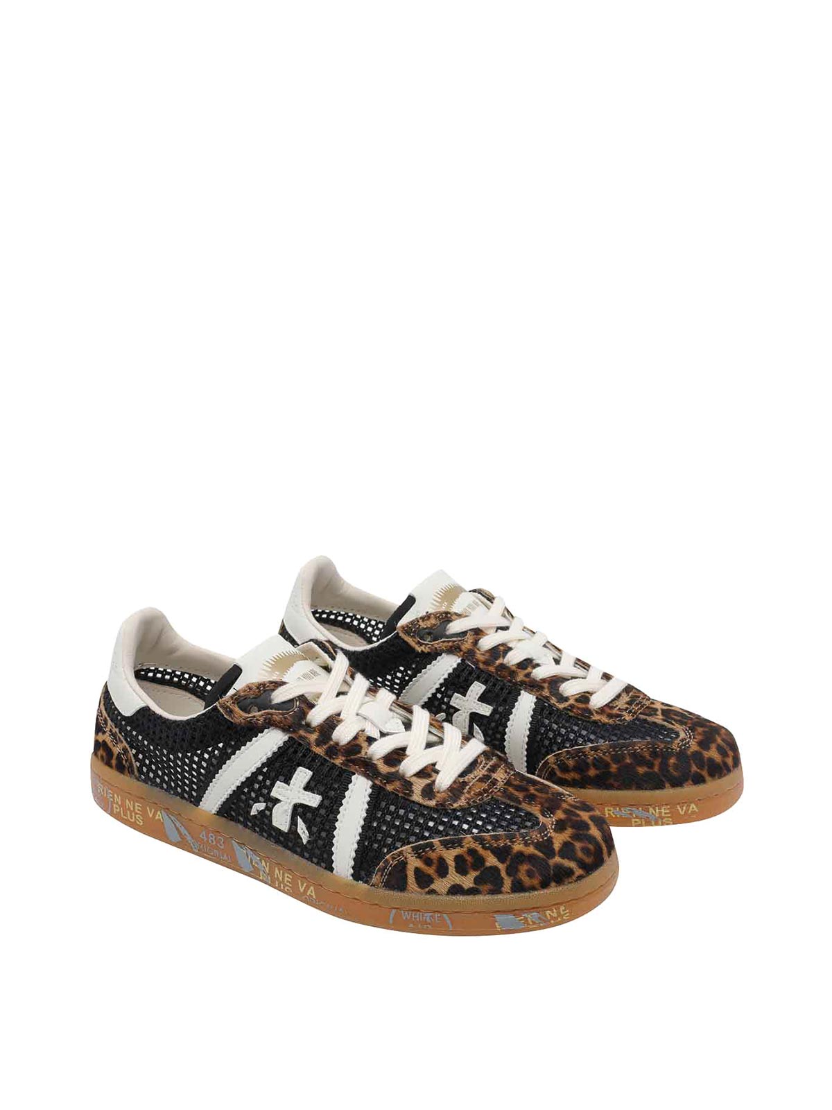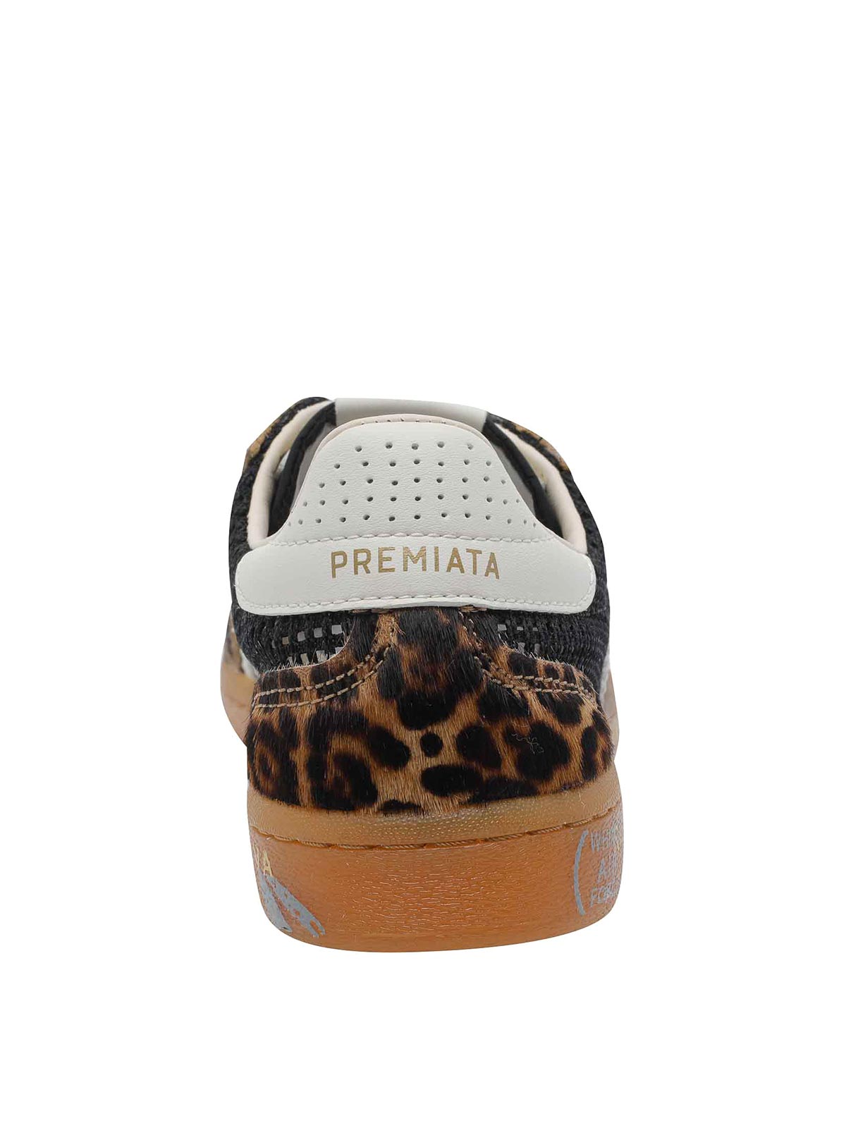 Baskets à bonnet marron Premiata, bout rond, effet animalier, fermeture à lacets