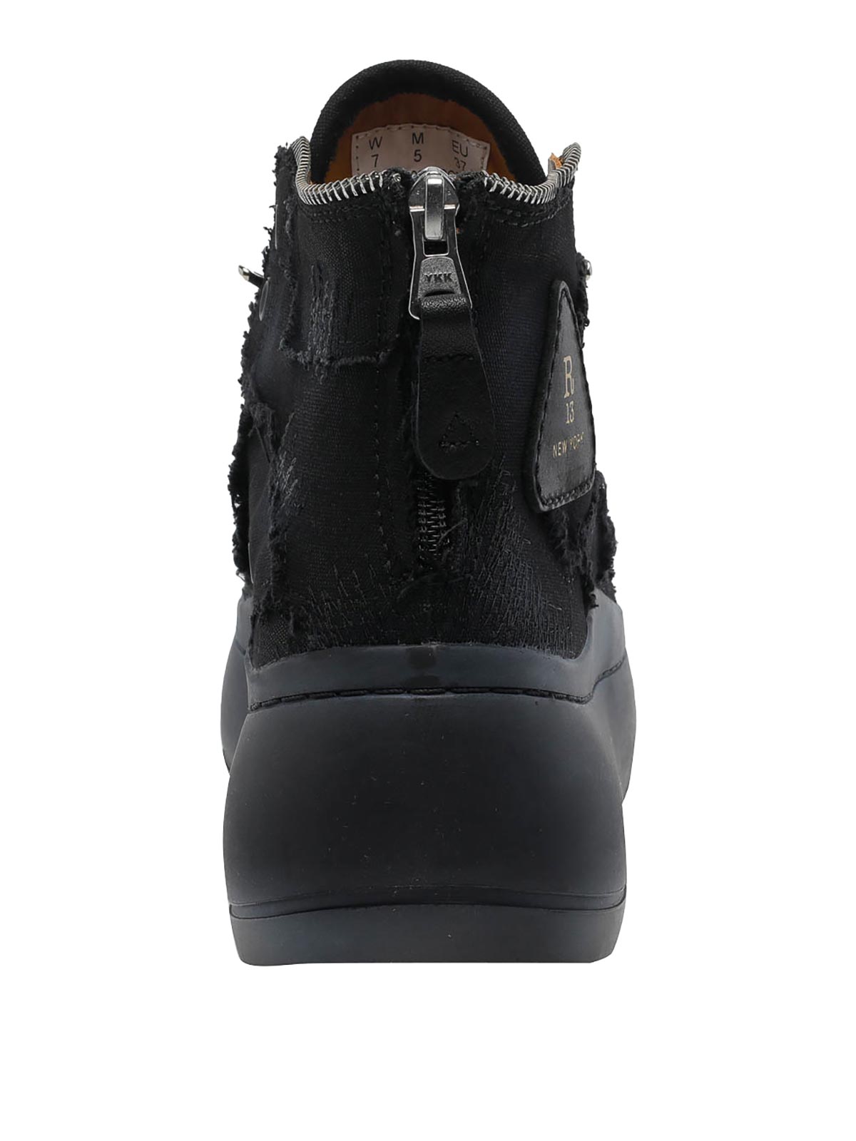 Baskets noires R13, haut haut, fermeture à lacets, dessus en tissu et semelle en caoutchouc, logo latéral, détails de clous