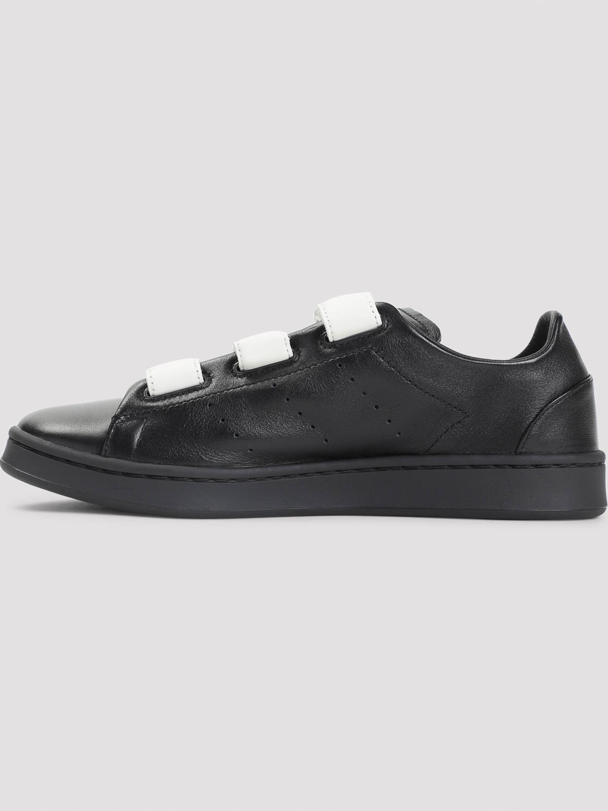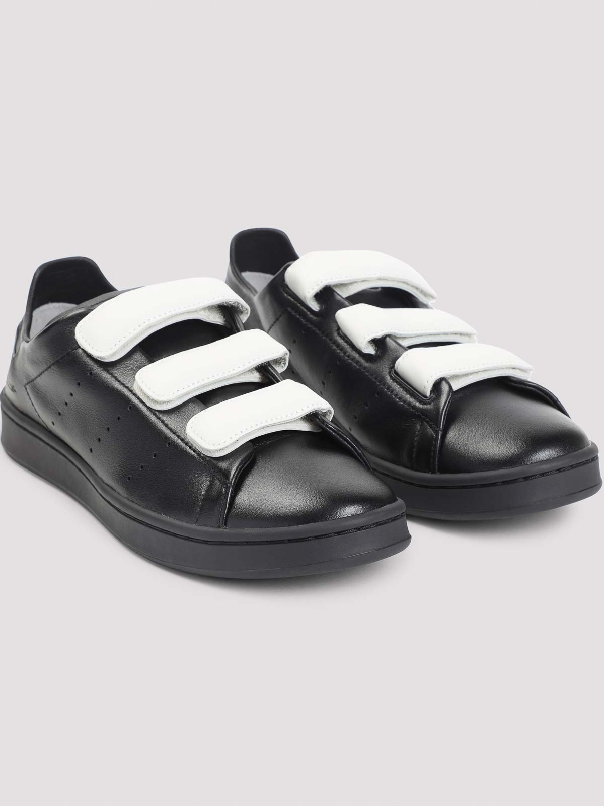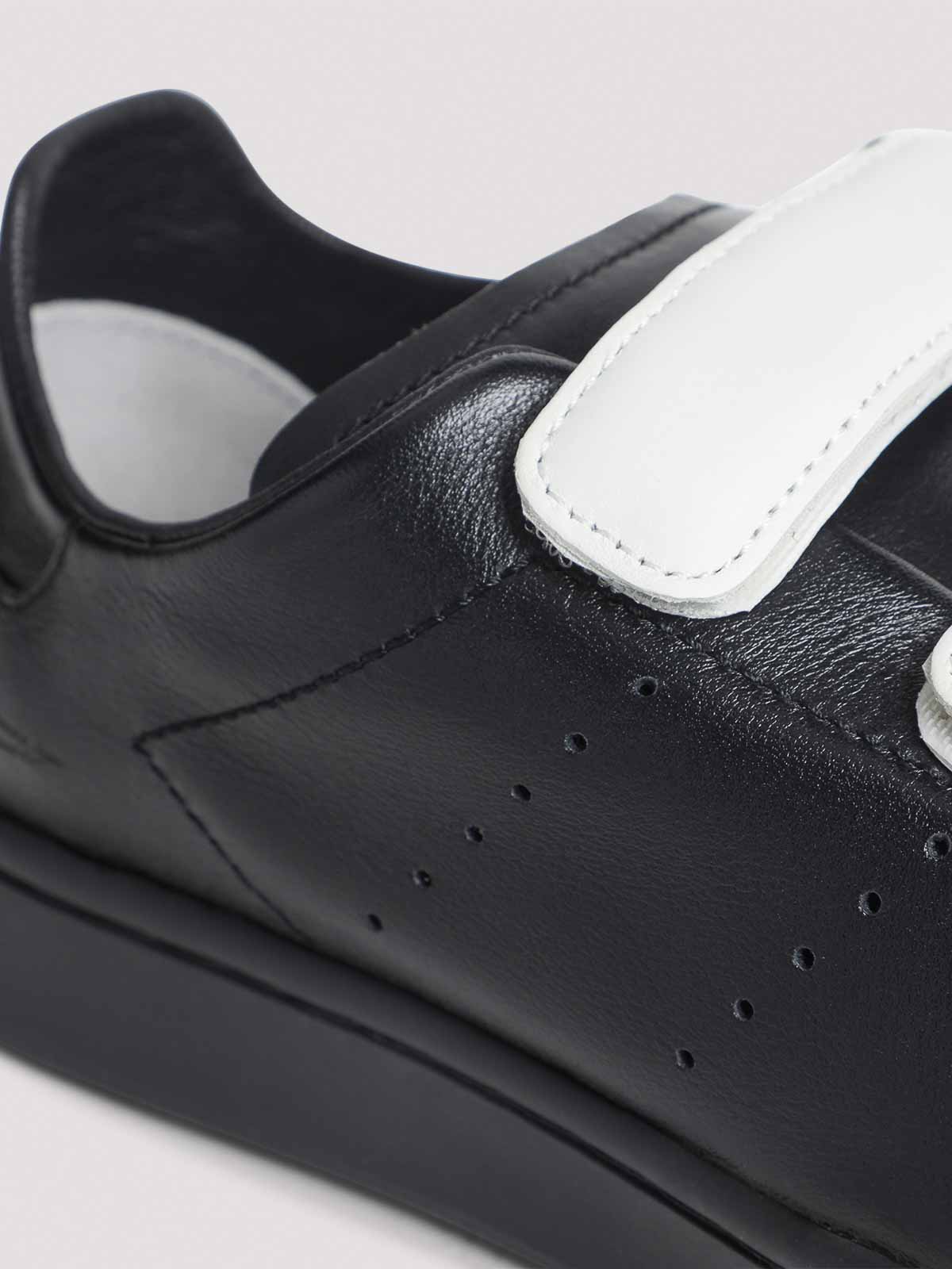 Baskets noires à velcro Y Stan Smith confectionnées en noir, bout rond, bande velcro blanche contrastante, logo sur la languette, trois perforations, détails à rayures sur les côtés, signature Yohji Yamamoto à l'arrière et à l'intérieur