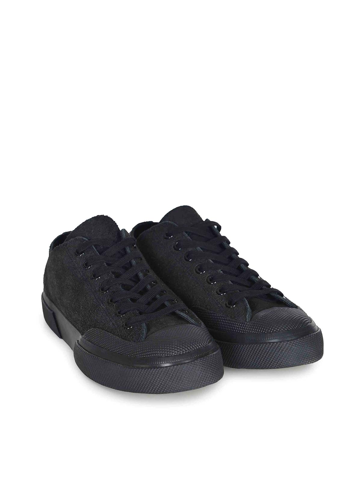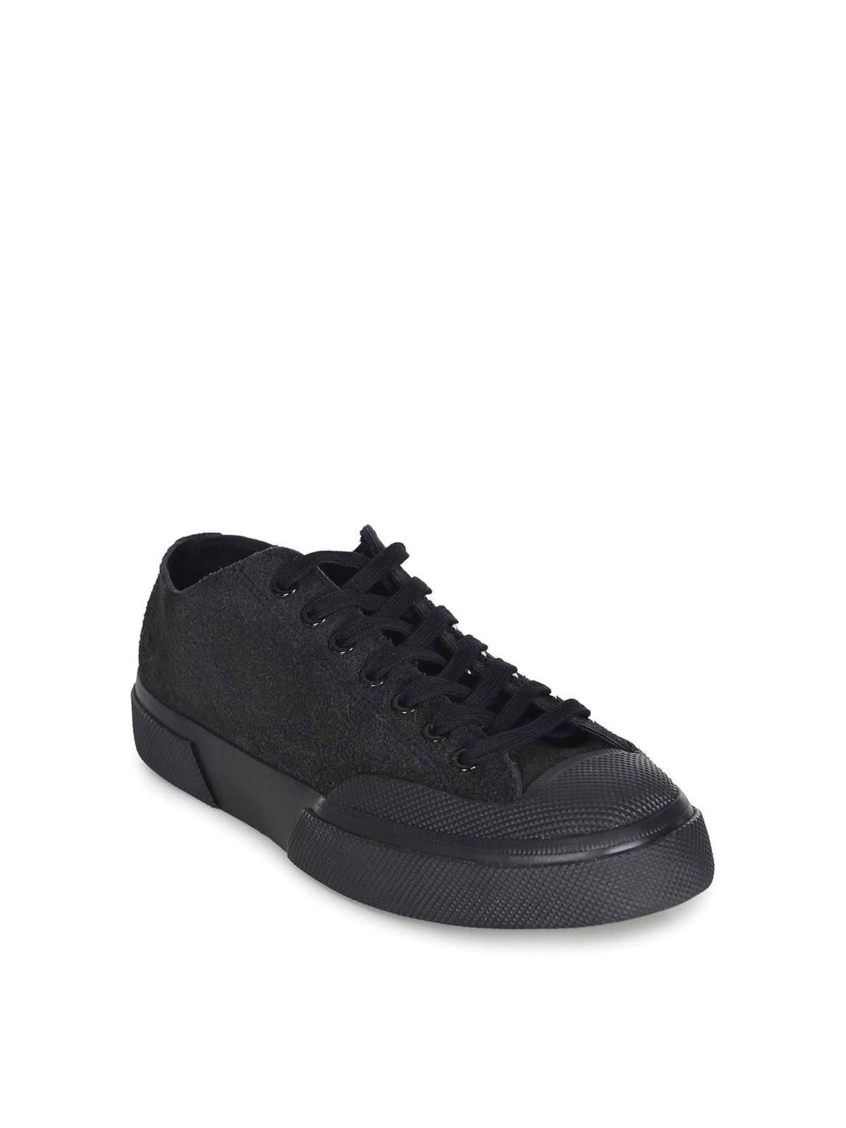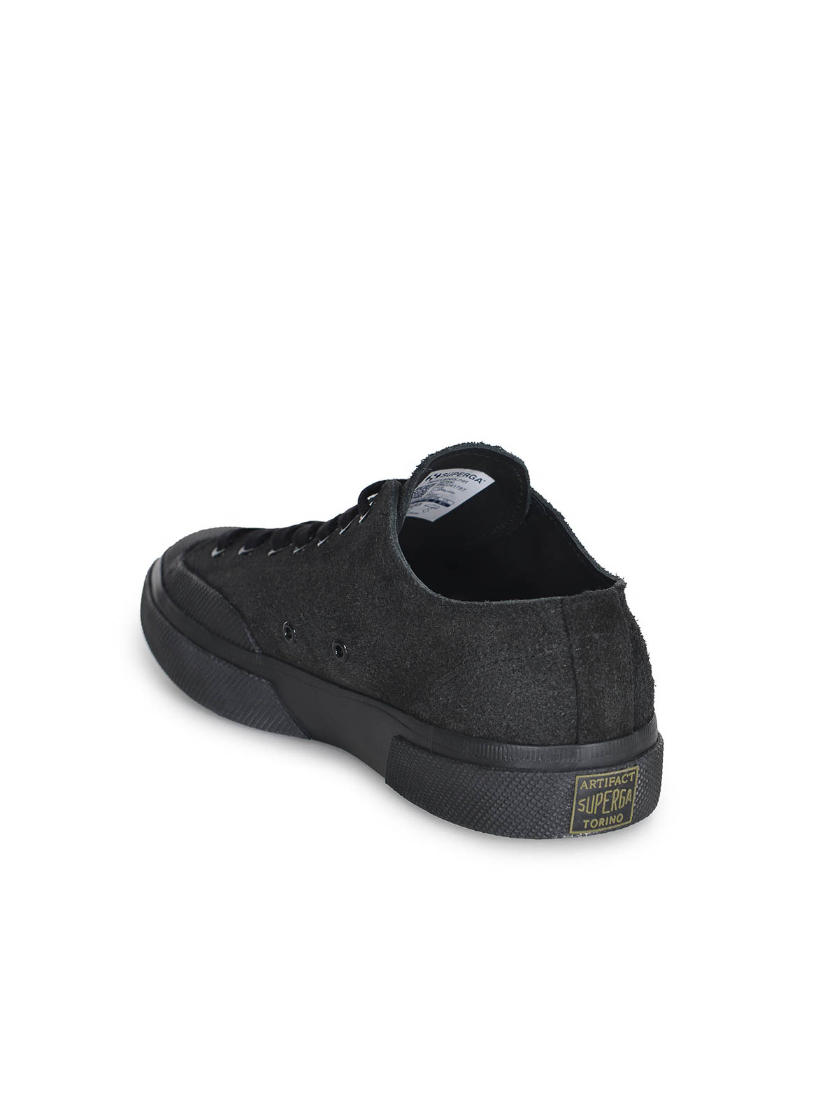 Baskets basses Superga Works en coton noir. daim. Lacé. dessus en toile de coton légère et respirante. Bout caoutchouté. Doublure en coton. pare-chocs en caoutchouc avec motif en losange. Logo appliqué à l'arrière de la semelle contrastante. semelle : 100 % caoutchouc 100 % coton.