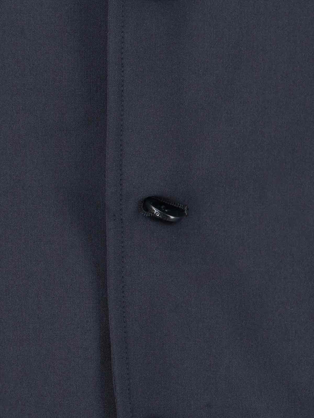 Blazer en laine mélangée Aspesi, bleu, bleu marine, revers classiques, fermeture boutonnée, poche poitrine, deux poches latérales à soufflet, poignets boutonnés, fente sur l'ourlet arrière, ourlet droit.