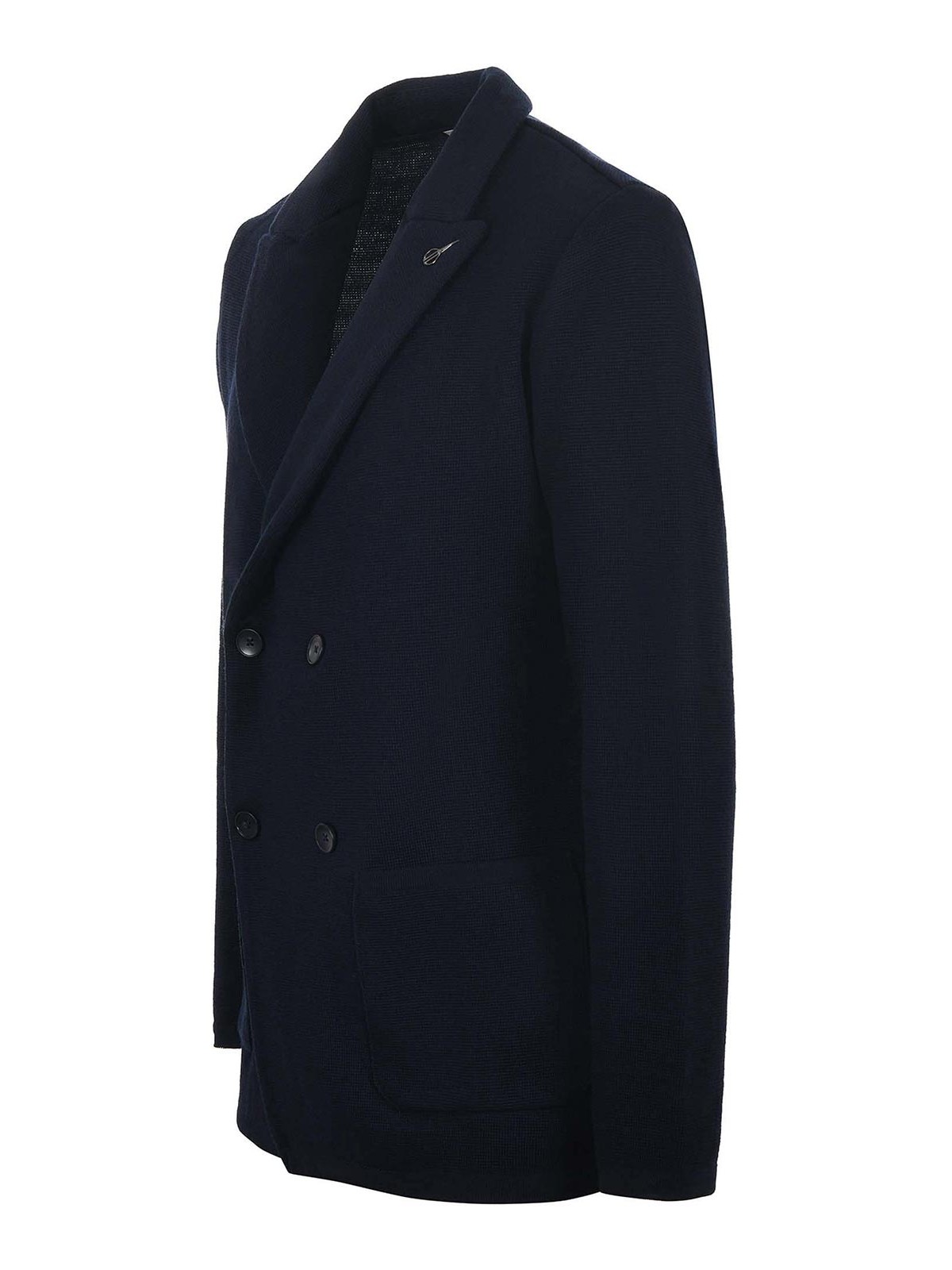 Veste et cardigan en laine mélangée Paoloni. Revers à pointe. Broche emblématique. Poches plaquées. Fermeture à double boutonnage. Sans doublure. 50 % laine vierge, 50 % fibre acrylique