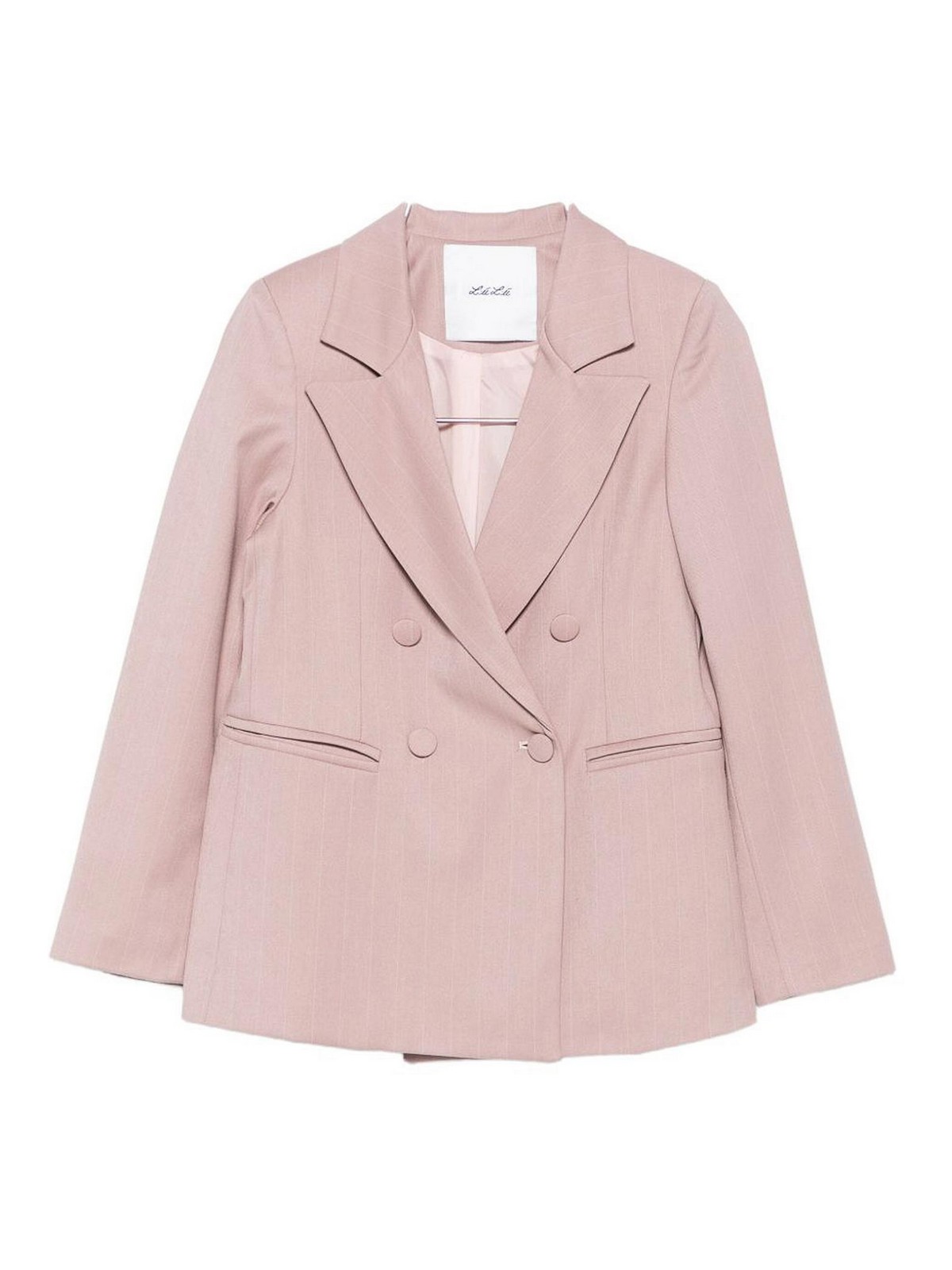 Blazer à double boutonnage à rayures roses et blanches avec poches