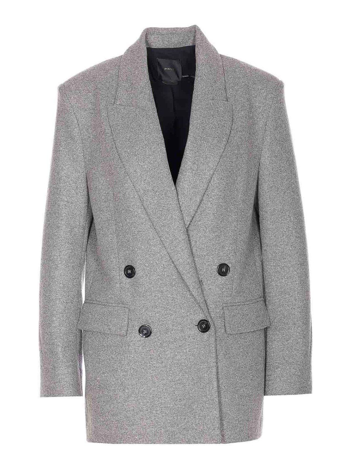 Veste Amora grise Pinko avec fermeture à double boutonnage sur le devant, manches longues, épaule renforcée