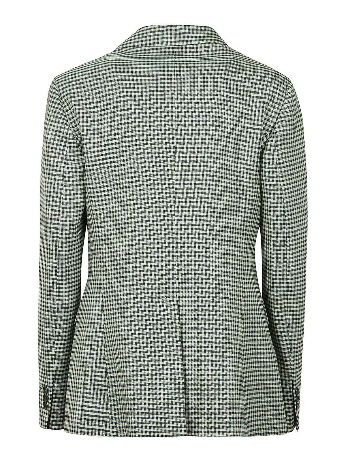 Blazer vert en laine stretch à motifs revers pointus fermeture à double boutonnage poches passepoilées à rabat poche poitrine fente arrière coupe regular fit 98% laine 2%