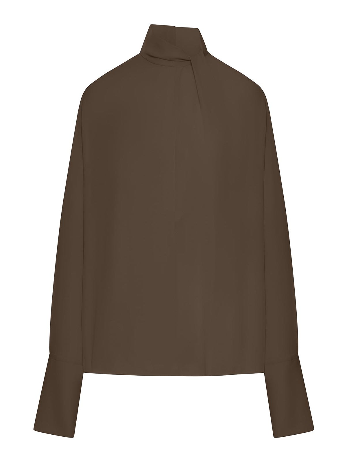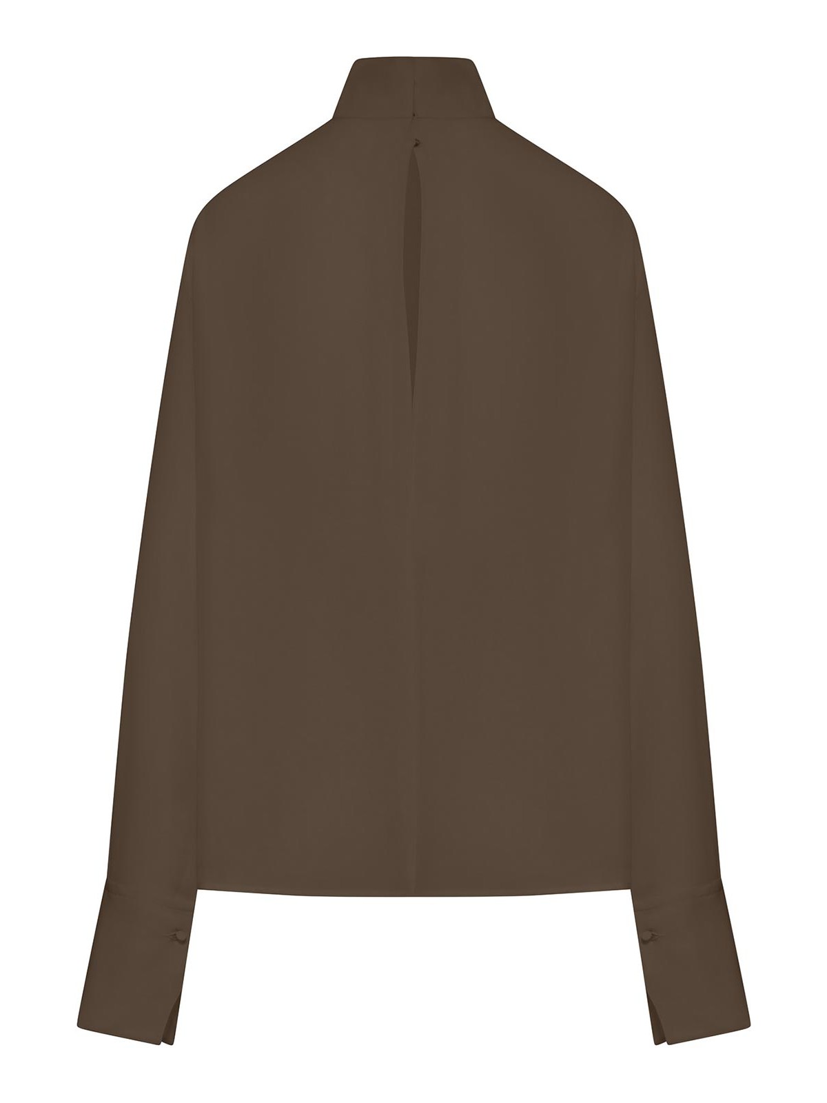 Col haut, ouverture du dos par boutons et crochets, manches longues, poignets hauts avec boutons, georgette, construction à panneaux, ourlet droit, paume