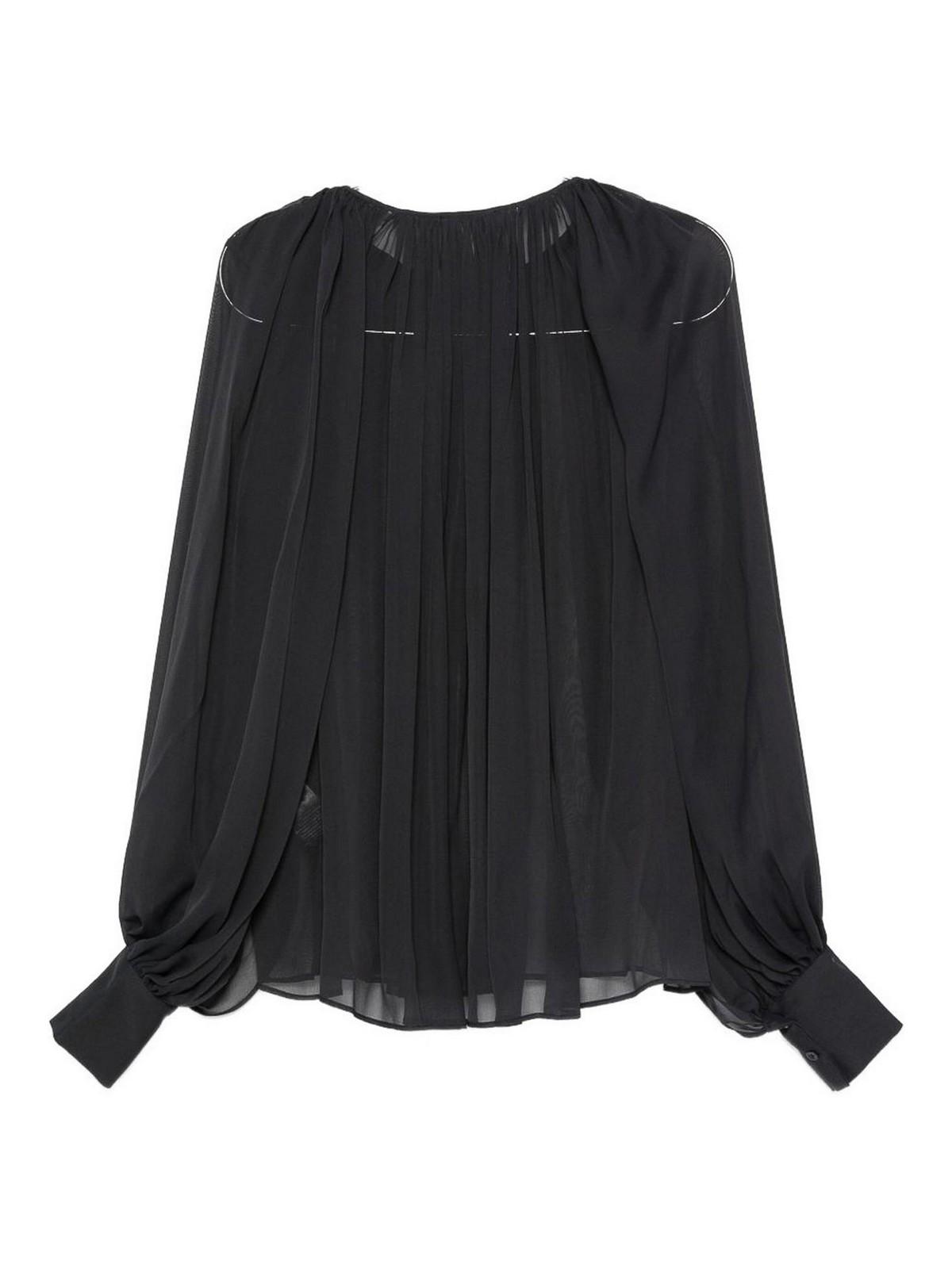Boutons noirs à manches longues et poignets boutonnés semi-transparents