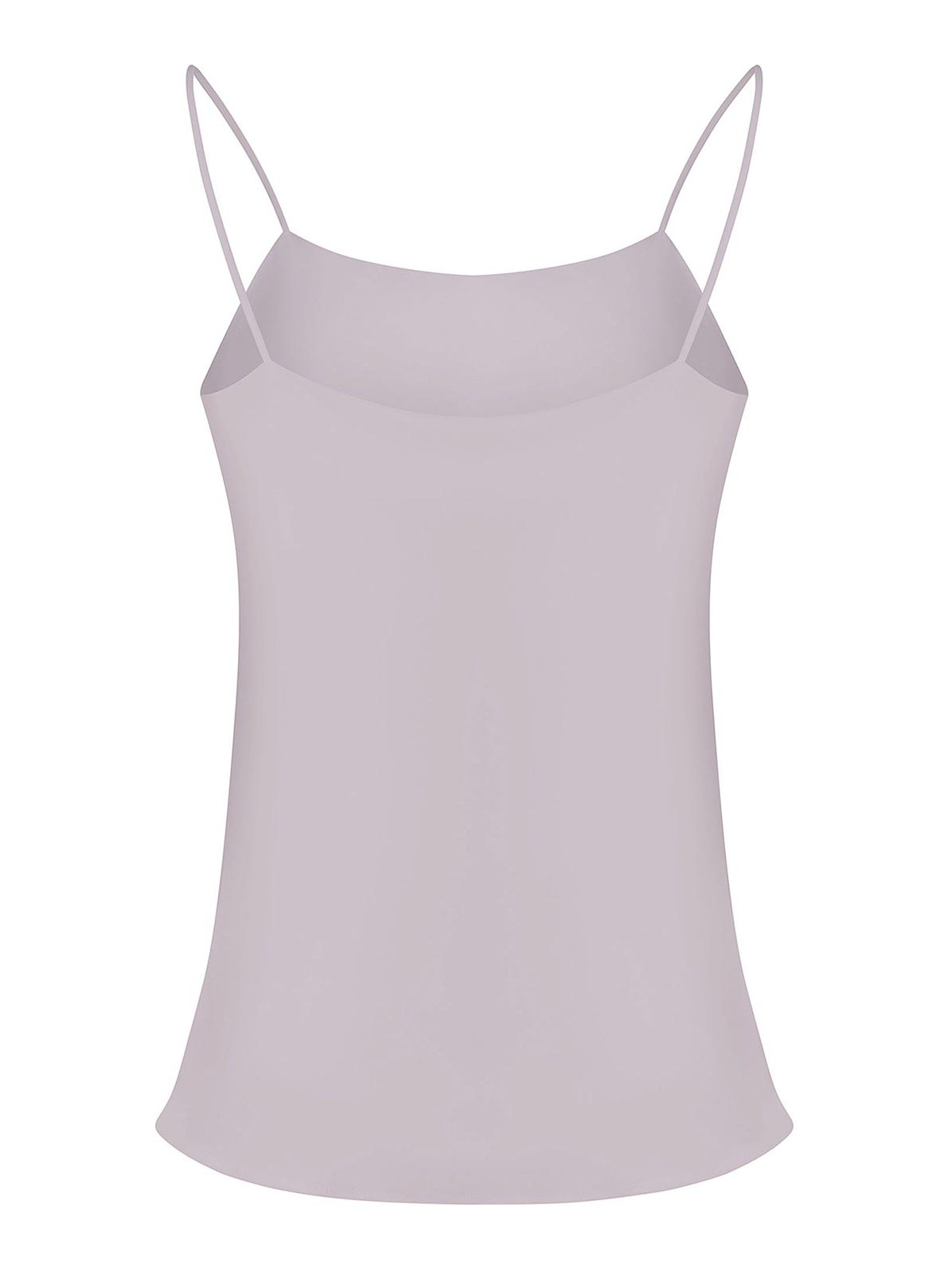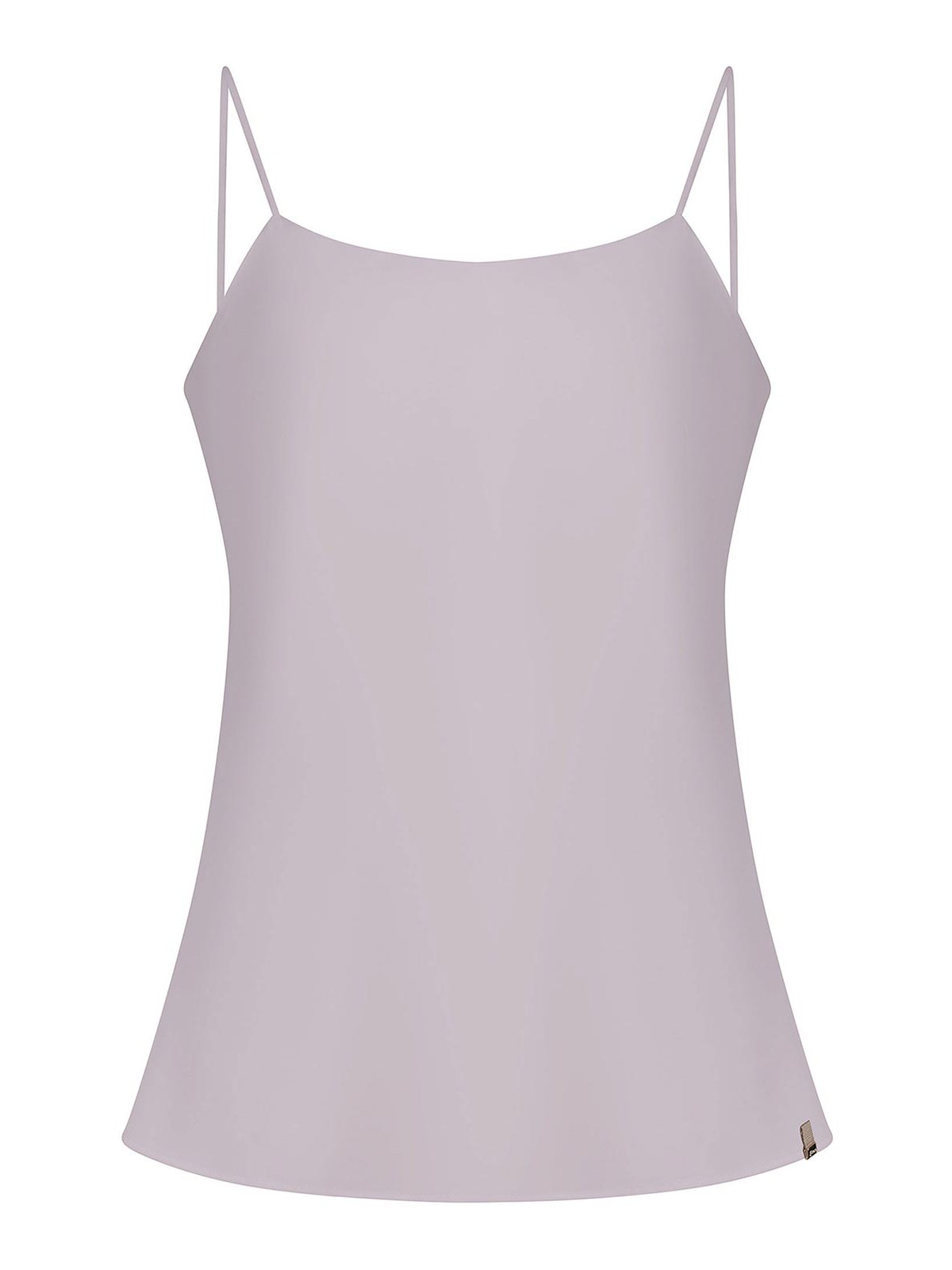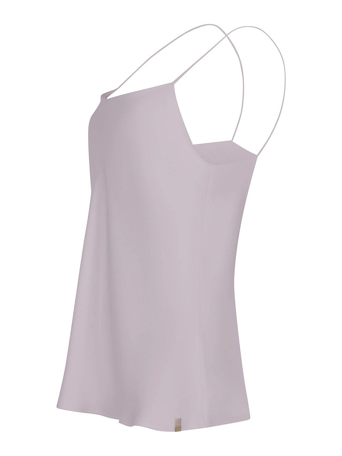 Blouse Herno en satin de couleur chantilly, encolure droite, fines bretelles, plaque logo en métal doré à l'ourlet, 100 % polyester fabriqué en Italie