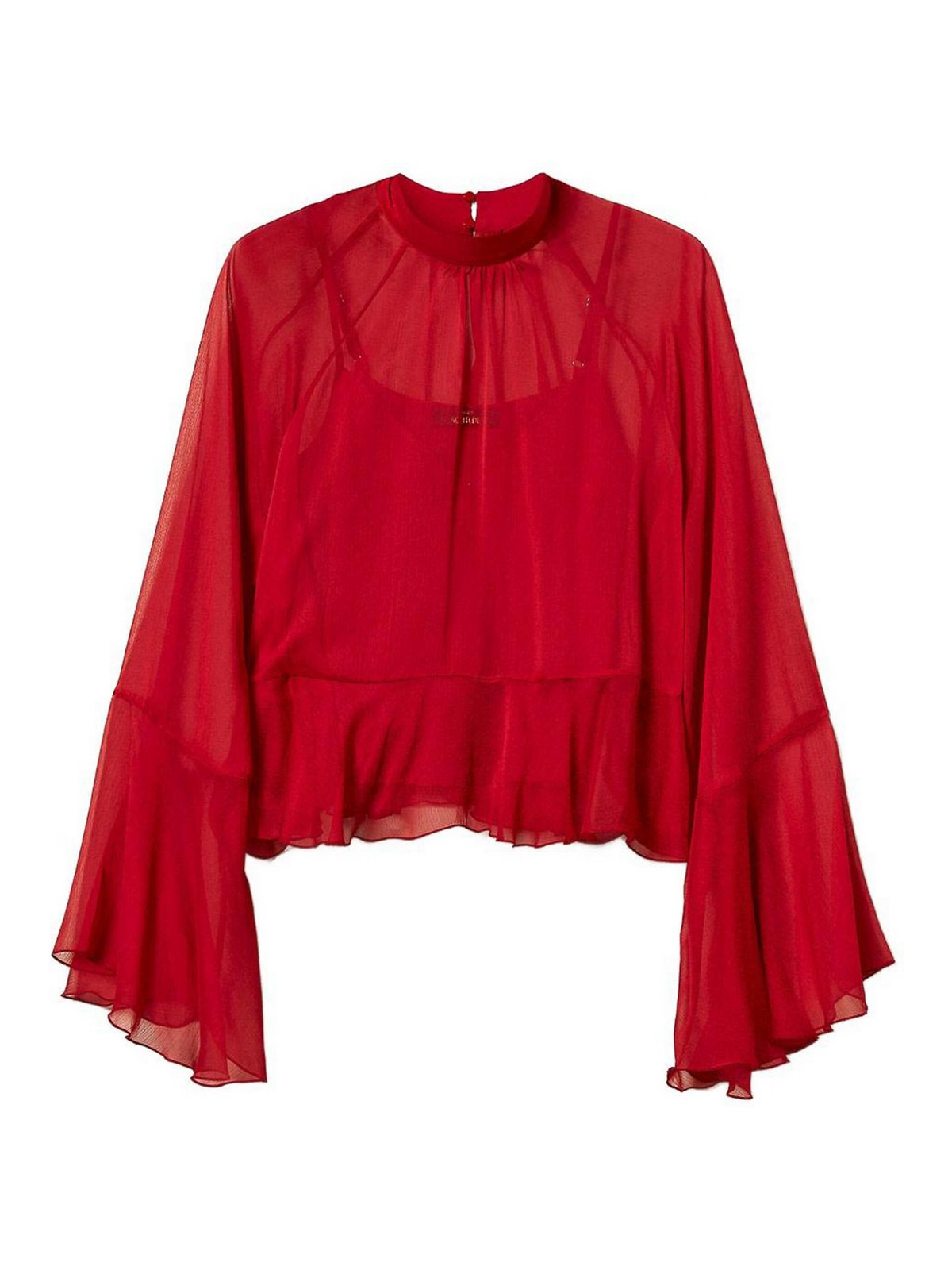 Manches évasées rouges à effet semi-transparent