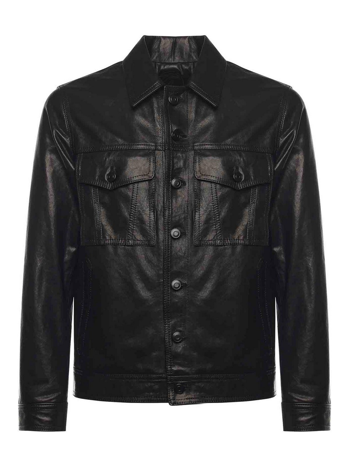 GIULIANO GALIANO: Vestes en cuir - Blouson En Cuir - Noir