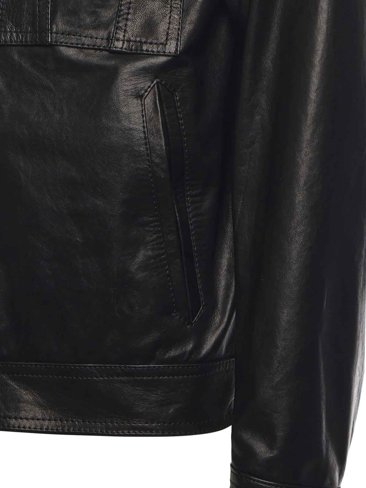 en cuir nappa naturel, fermeture boutonnée sur le devant, 2 poches plaquées sur la poitrine, 2 poches latérales, coupe classique, la taille montrée sur la photo est 48, fabriqué en Italie, couleur : noir