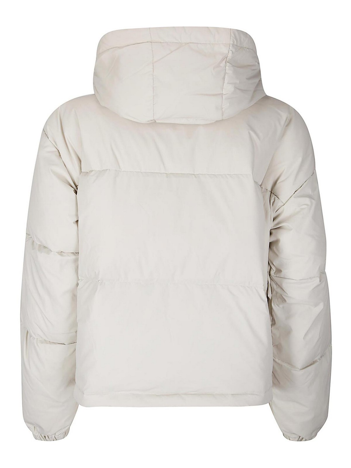 Veste courte en duvet adaptée aux climats rigoureux, fermeture zippée cachée, poches latérales, logo appliqué, capuche amovible.