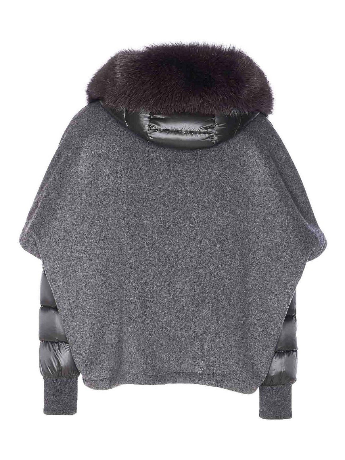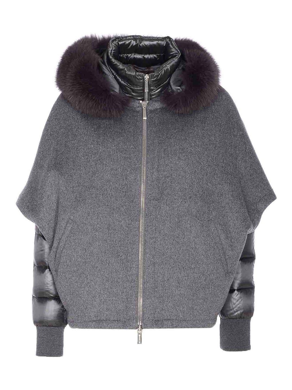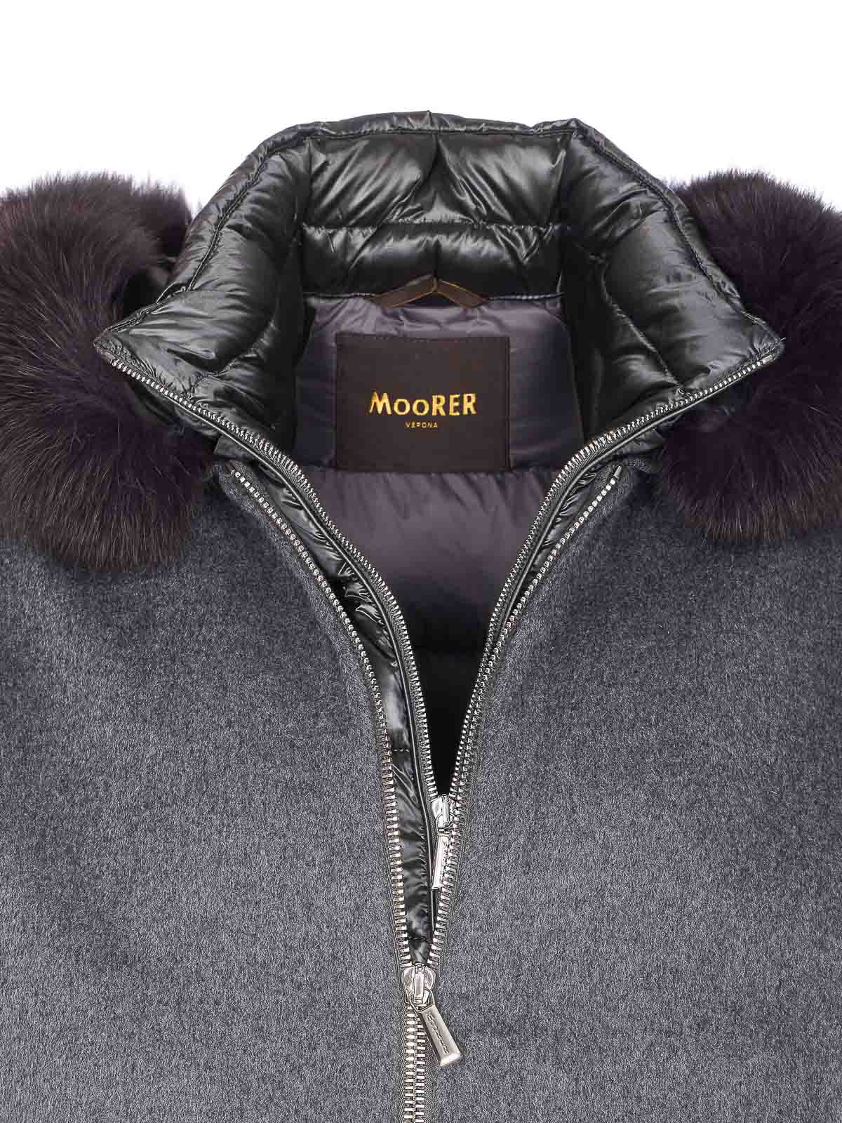Doudoune pégaso grise Moorer avec fermeture zippée frontale, gilet avec fermeture zippée, capuche avec détail en fourrure amovible, poches rembourrées