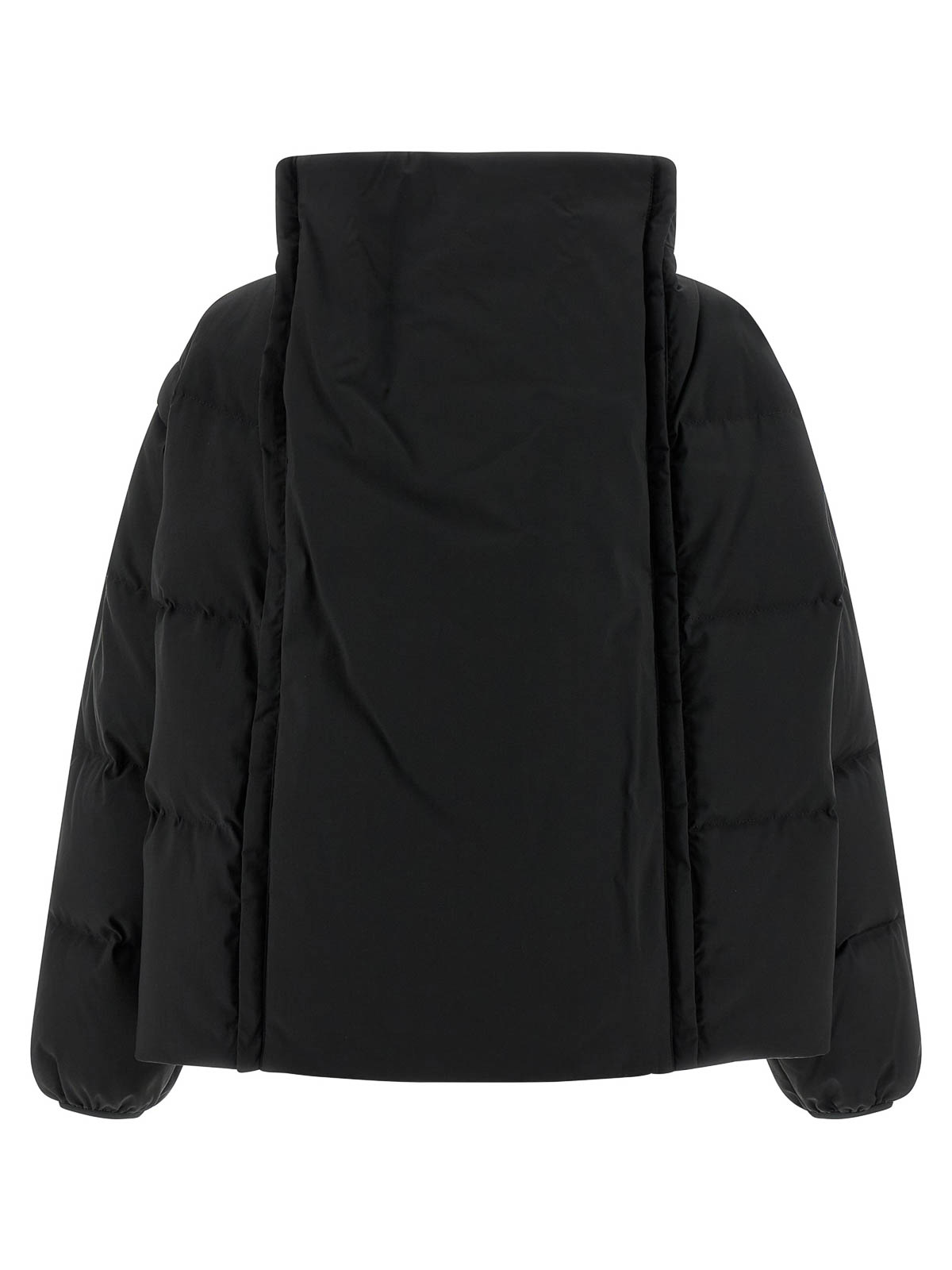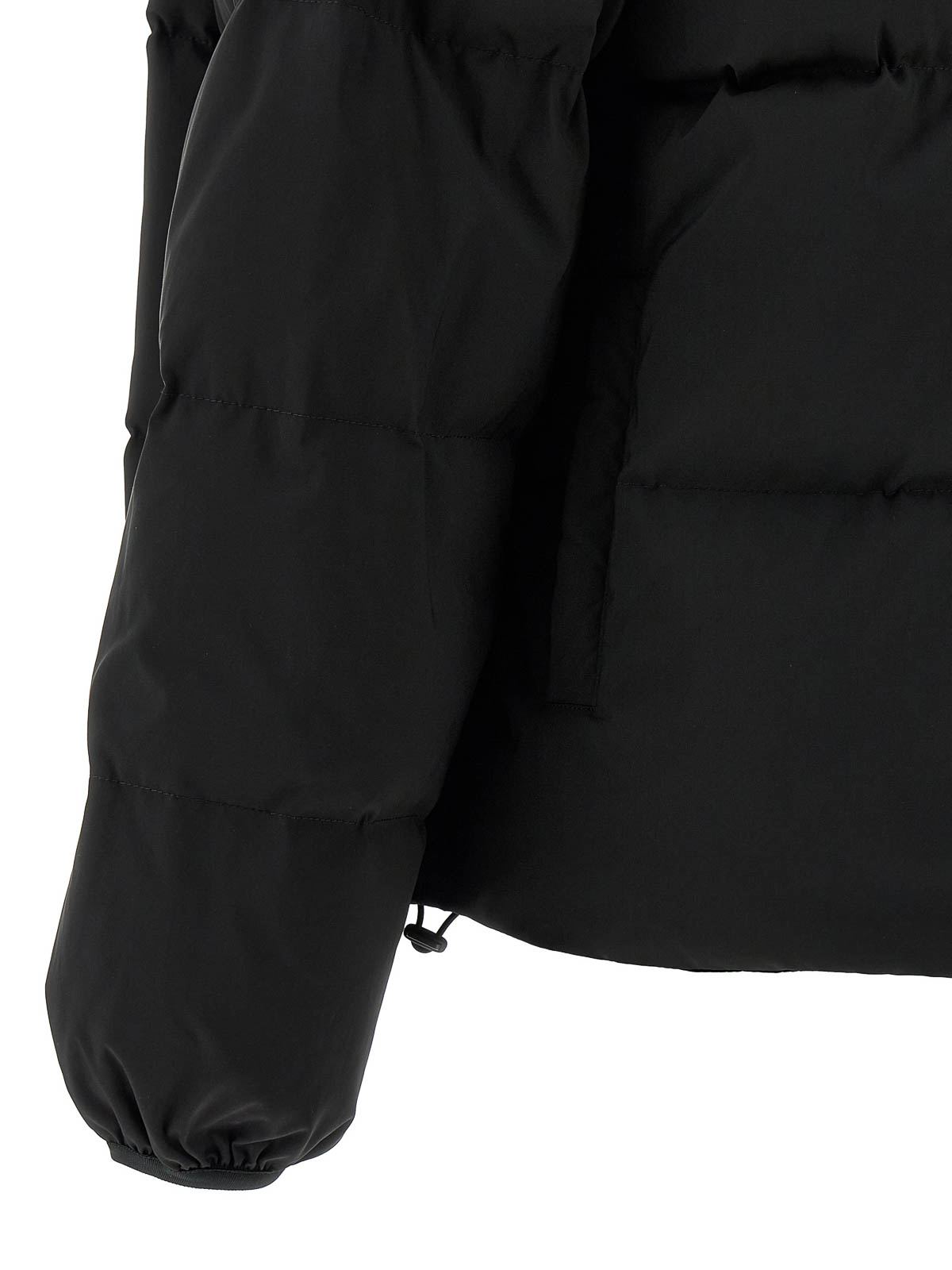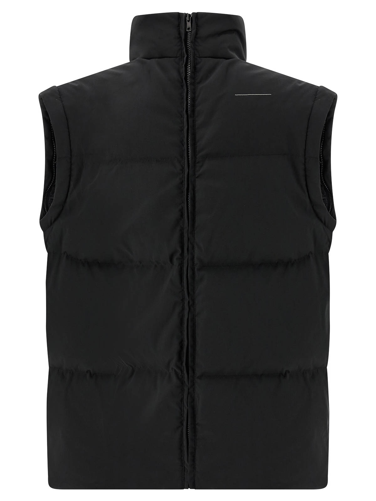 Doudoune en tissu matelassé et rembourré en plumes d'oie, broderie « signature numérique mm6 » ton sur ton et fermeture zippée sur le devant, col haut en forme d'entonnoir, poches, manches longues amovibles avec élastique, cordon de serrage à l'ourlet, panneau arrière extensible avec fermeture éclair.