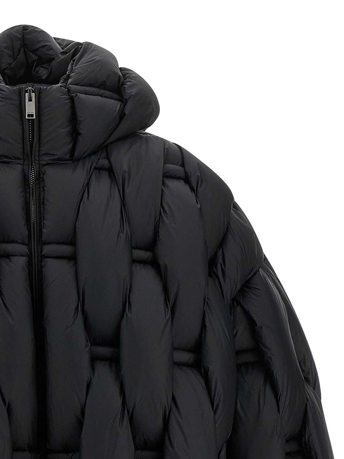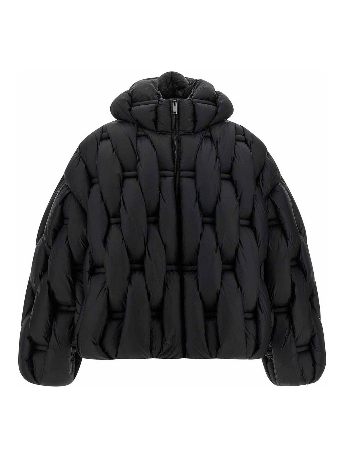 Doudoune en nylon avec structure 3D tressée et rembourrage en plumes d'oie, capuche, col haut, fermeture zippée sur le devant, poches, manches longues avec poignets et épaules tombantes, cordon de serrage à l'ourlet.