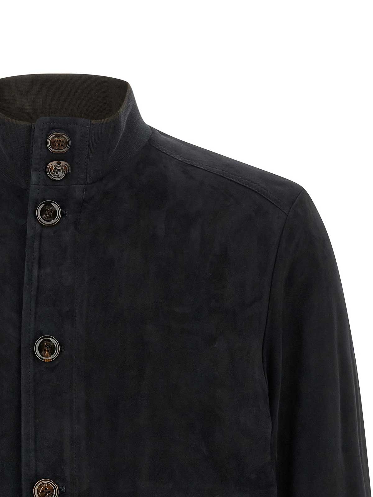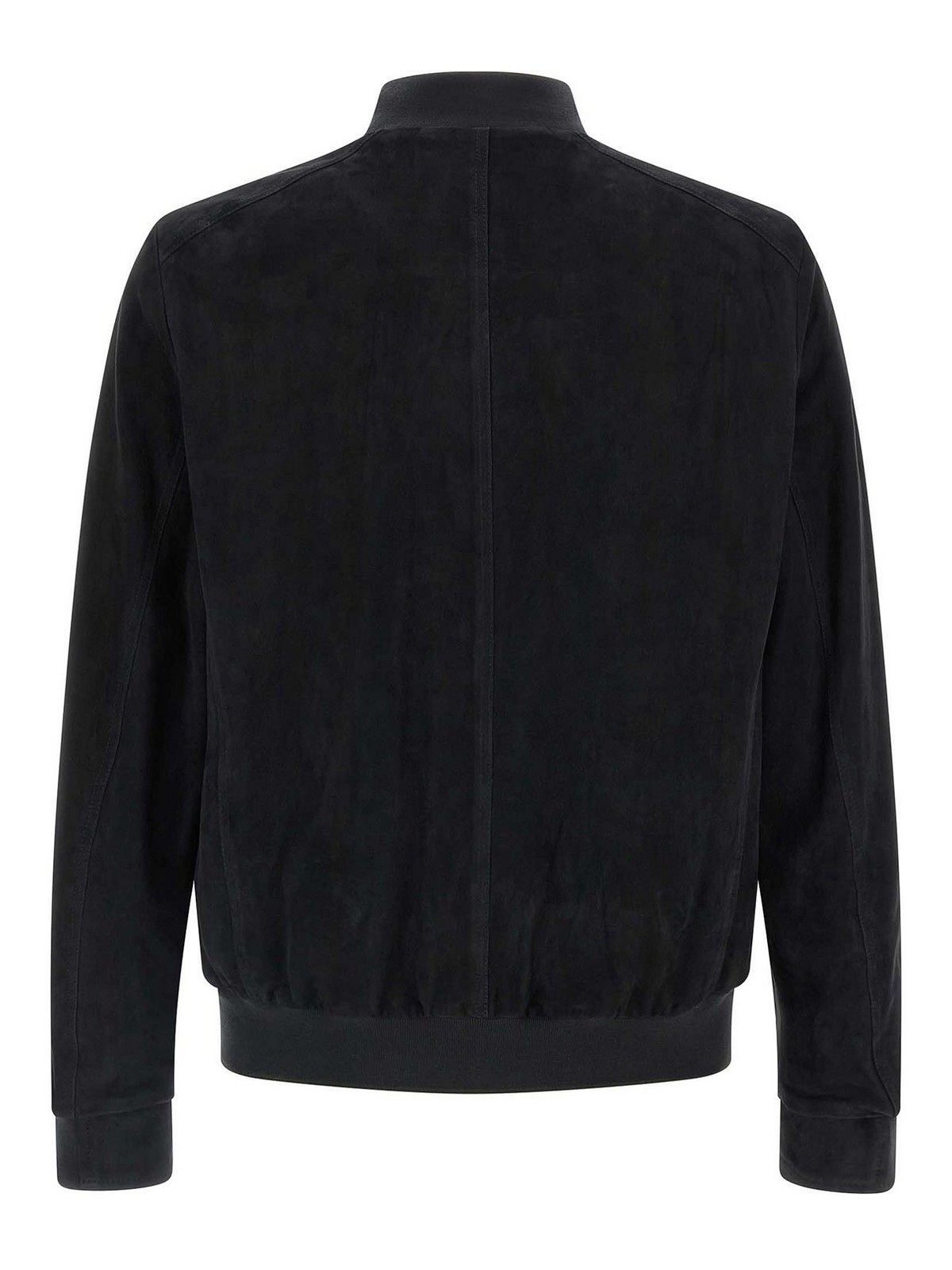 blouson bomber carlos en nappa d'agneau très léger traité avec une finition qui s'embue et sèche lentement pour faire bouger les coutures, détails en maille stretch côtelée, col haut, fermeture zippée sur le devant, poches, manches longues à revers, bandeau, doublure.