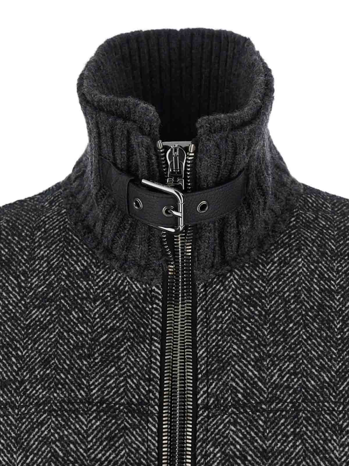 Panneaux en tricot côtelé à motif à chevrons gris cendré et fermeture éclair