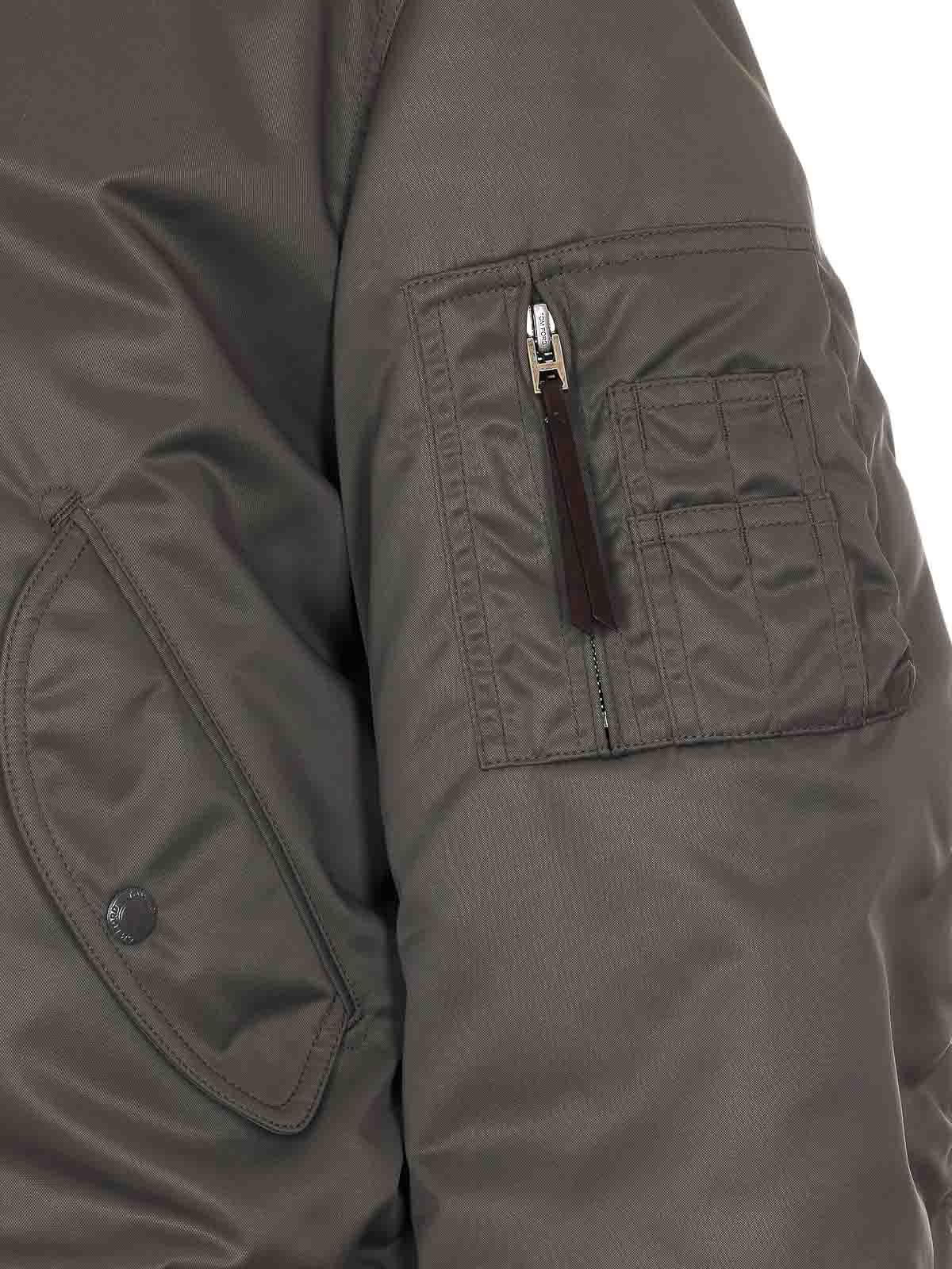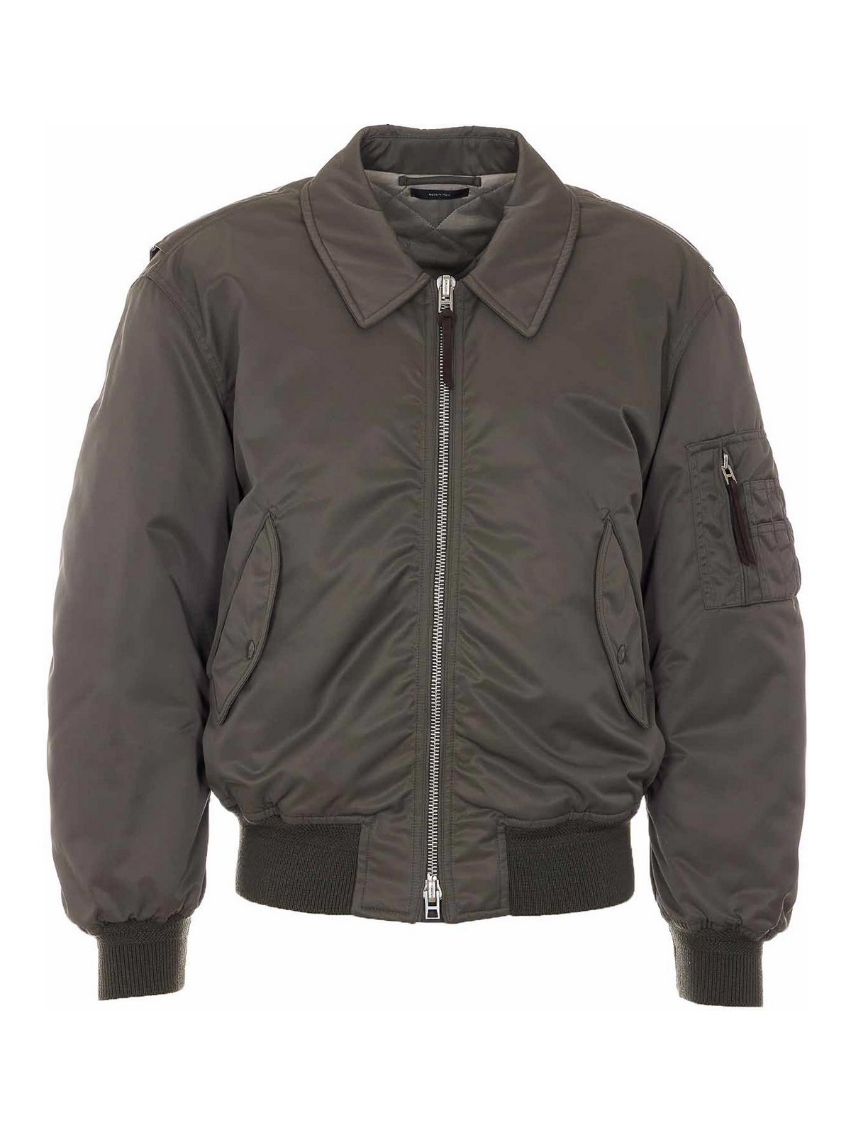 Veste technique Tom Ford en duvet olive avec fermeture zippée frontale, col régulier, manches longues, élastiquée aux poignets et à la taille
