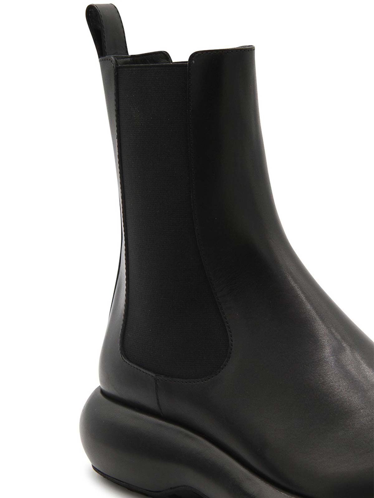 Bottes noires de la marque Jil Sander dotées de panneaux latéraux élastiqués, d'une languette à tirer sur le logo, d'un bout en amande, d'un style à enfiler et d'un modèle plat