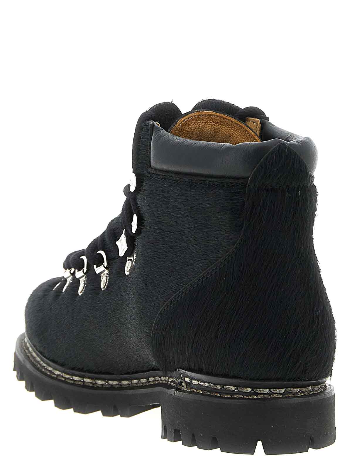 Bottes en poil de poney Junya Watanabe x Paraboot, bout arrondi, fermeture à rivets en métal, semelle en caoutchouc antidérapante.