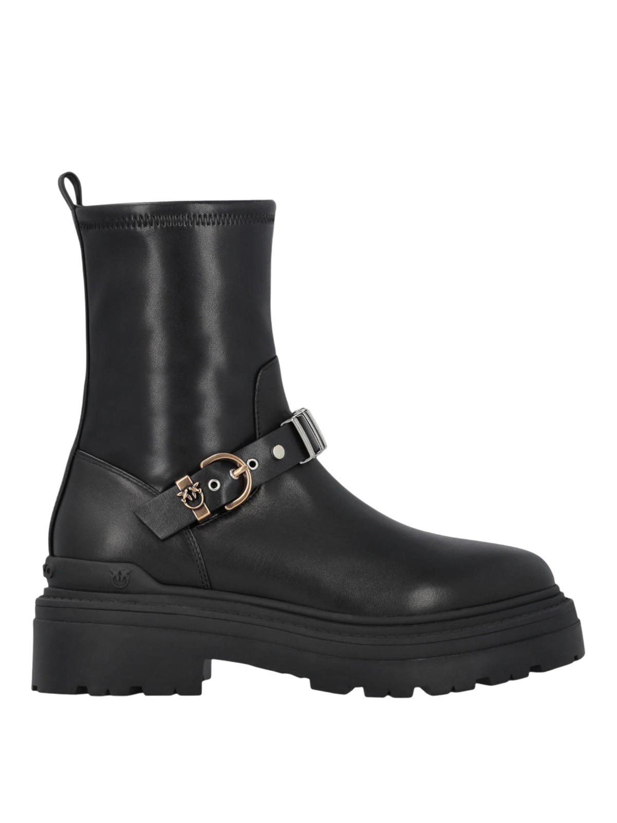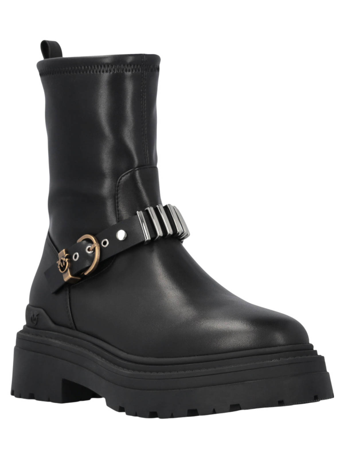 Bottines Pinko avec mollet métallisé au design essentiel et audacieux, le modèle enrichi de matières métalliques qui soulignent la personnalité et le caractère. La tirette arrière facilite l'ajustement tandis que la sangle avant ajustable avec boucle et passant métallique avec le logo Love Birds ajoute une touche rock et sophistiquée. Un accessoire parfait pour donner une touche de style irrécréatif Look décontracté ou urbain et facile à porter. Sangle avant extensible réglable avec boucle et logo LOVE Birds. ajustement facile grâce à un design minimal et décisif avec ajustement régulier du métal
