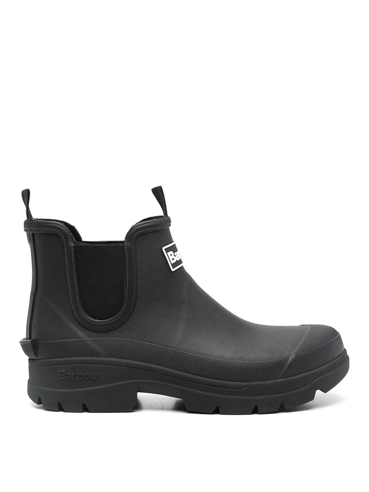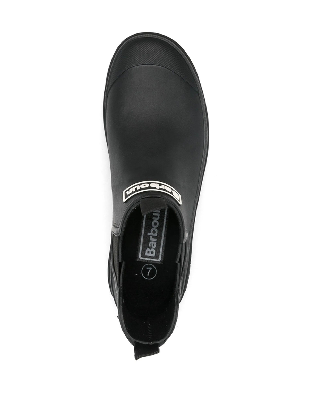 Slip noir mat à enfiler, panneaux latéraux élastiqués, double tirette, languette au niveau de l'ouverture de la cheville, logo embossé sur le côté, logo embossé à la marque