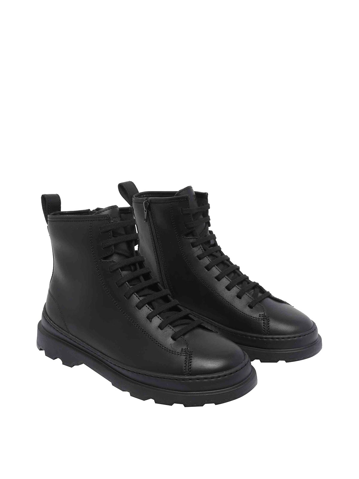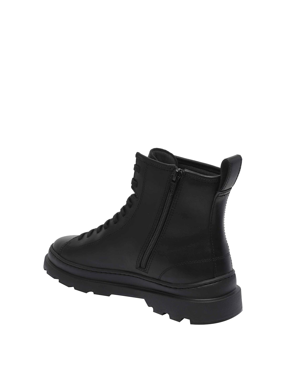 Baskets Camper noires Brutus, bout rond, fermeture à lacets, fermeture zippée latérale, dessus en cuir