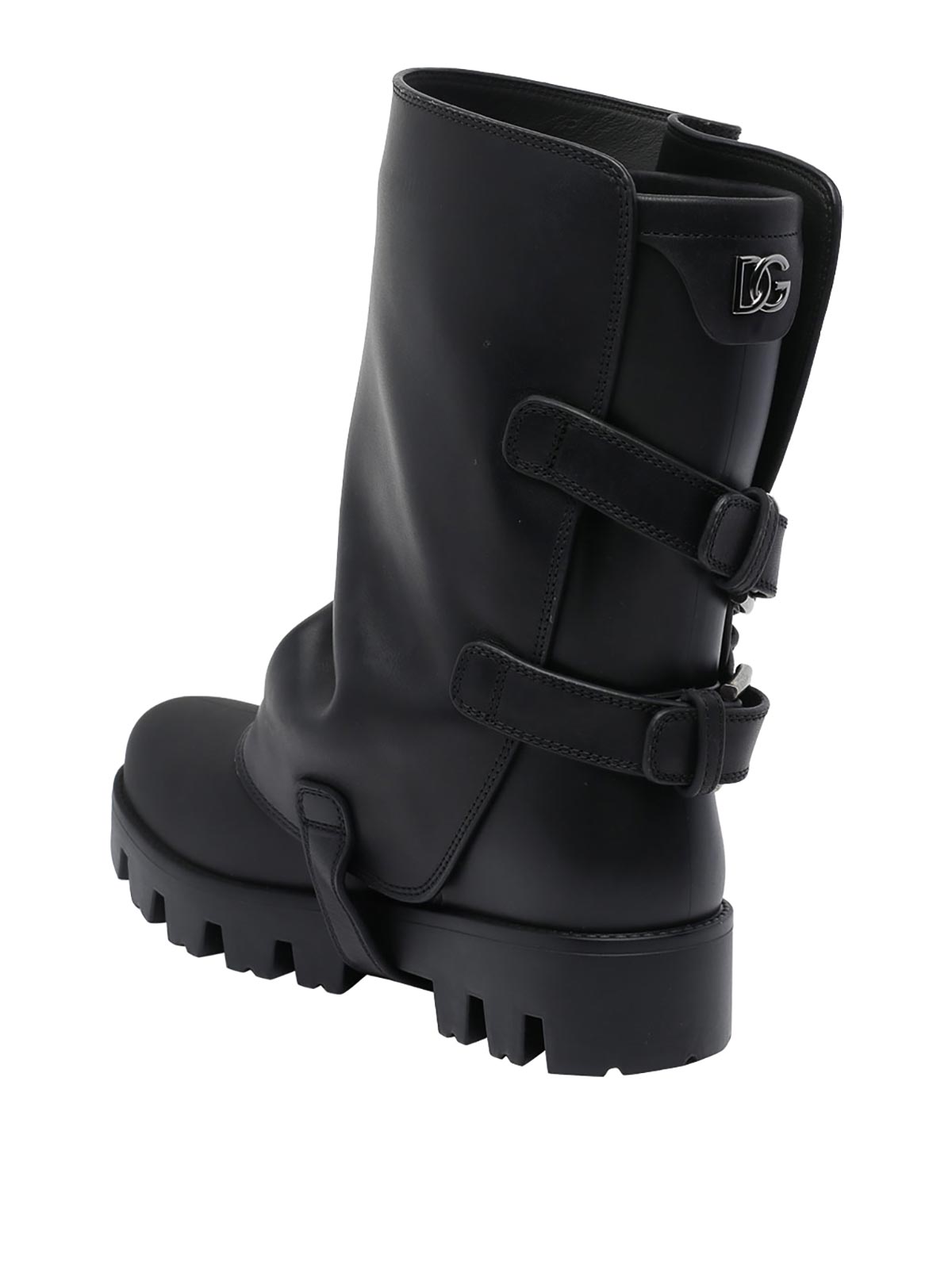 Bottines noires à boucle Dolce&Gabbana, détail de boucle, dessus en cuir, bout rond