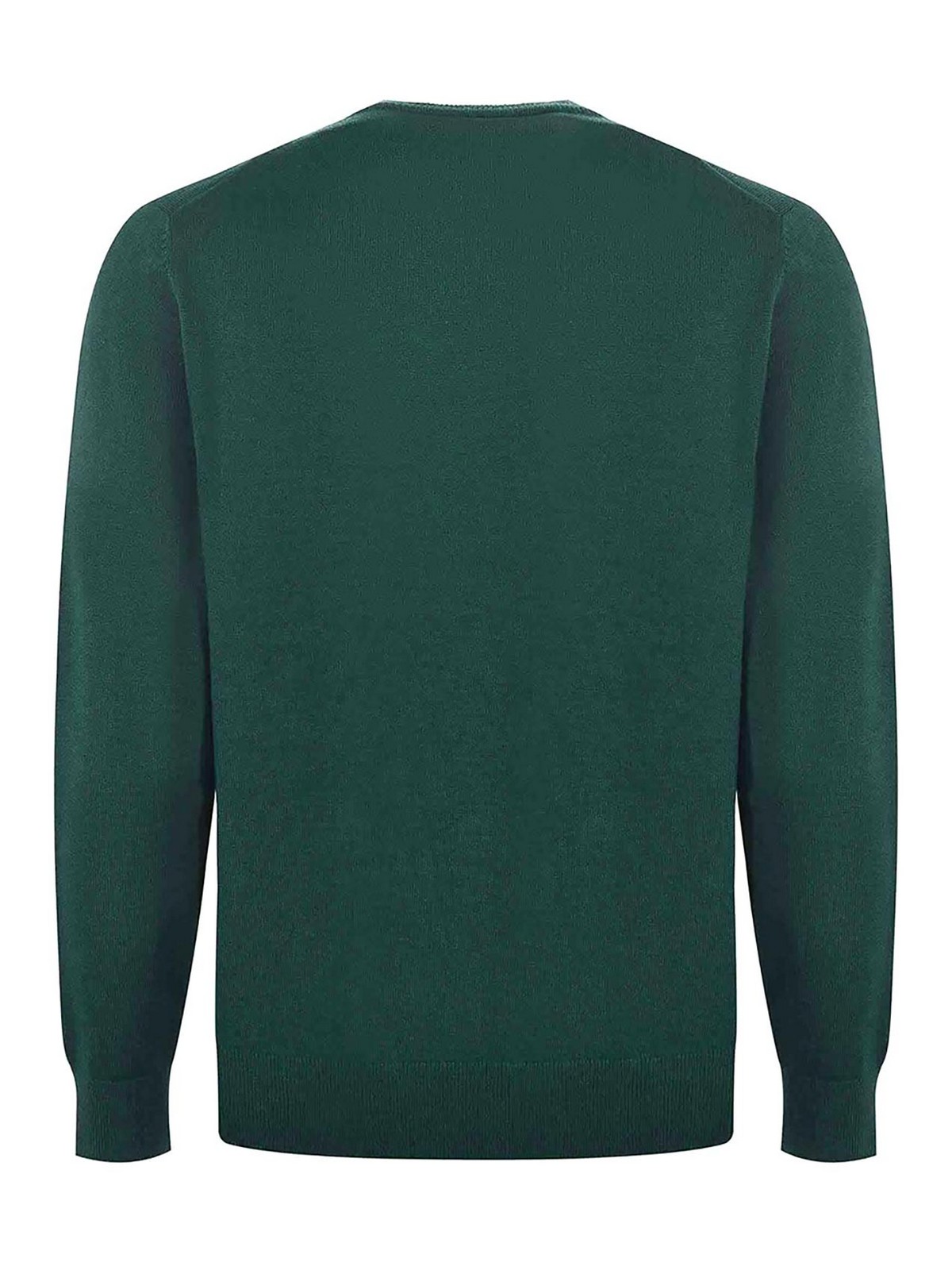 Pull Mc2 Saint Barth en laine et cachemire mélangés vert anglais. col ras-du-cou côtelé. broderie tendance du jour au soir sur le devant. manches longues. Poignets et ourlet côtelés. Taille indiquée : m 40 % laine, 25 % viscose, 25 % polyamide, 10 % cachemire