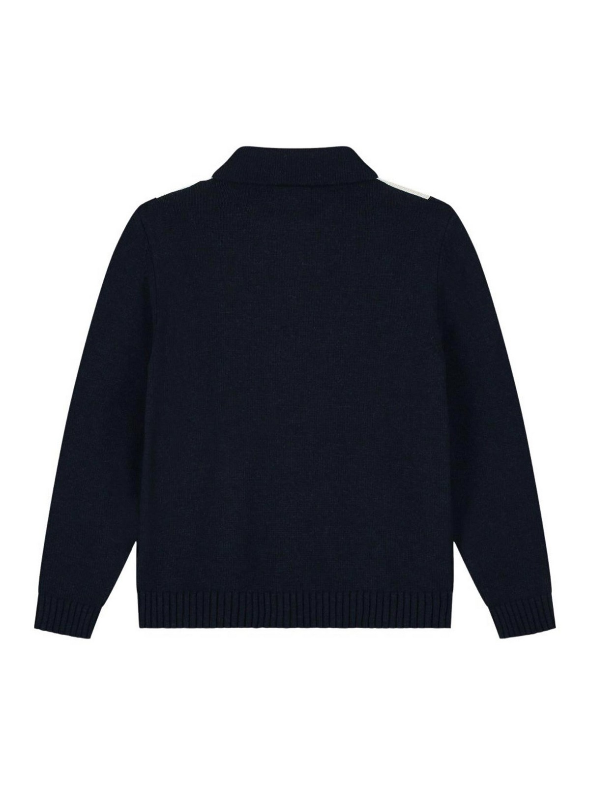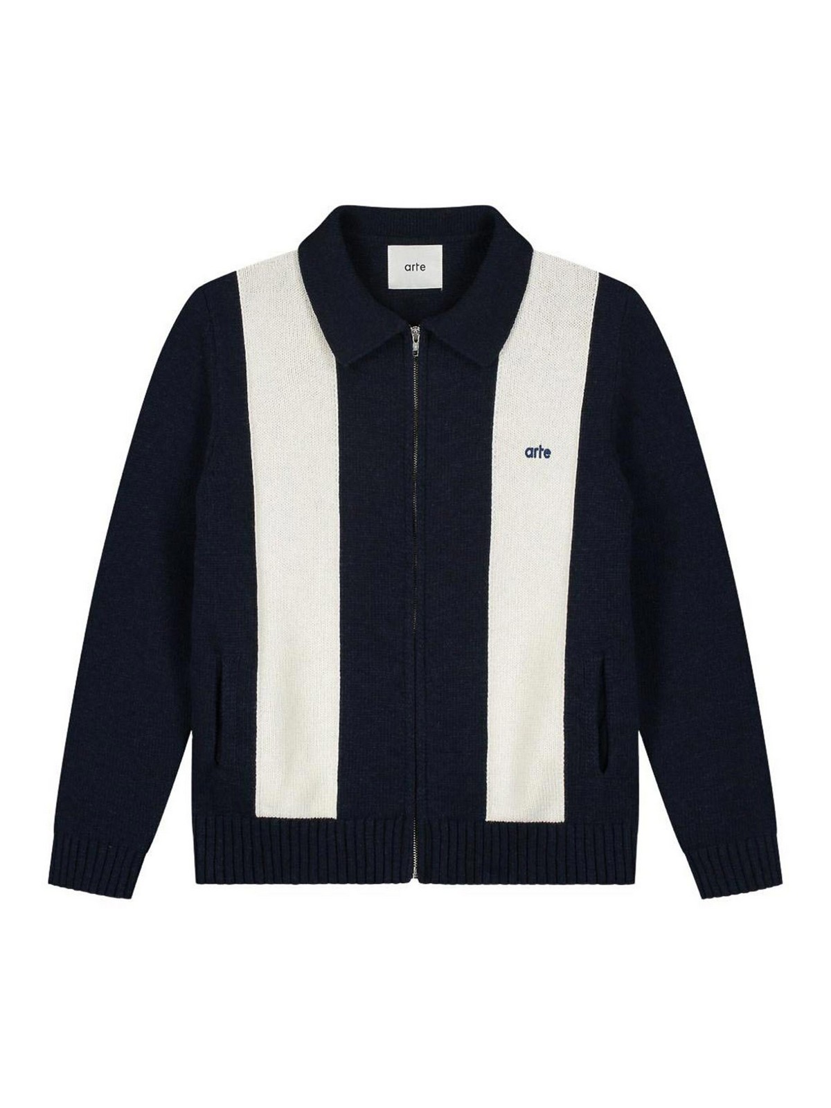 Doté d'ourlets côtelés bleu marine, d'une encolure zippée avec logo brodé
